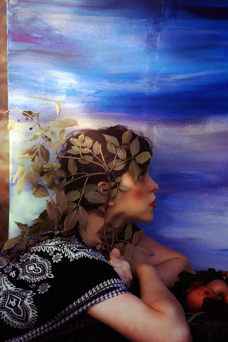Her fascination for the art of self-portraiture, a specialisation that she began to practice as part of her studies of Cinema, Visual Arts and Art History at the School of Arts at the Sorbonne-Pantheon. Hence her photographic work in the “scènaristique” staging inspired by the Pre-Raphaelite and Romantic periods of classical painting.