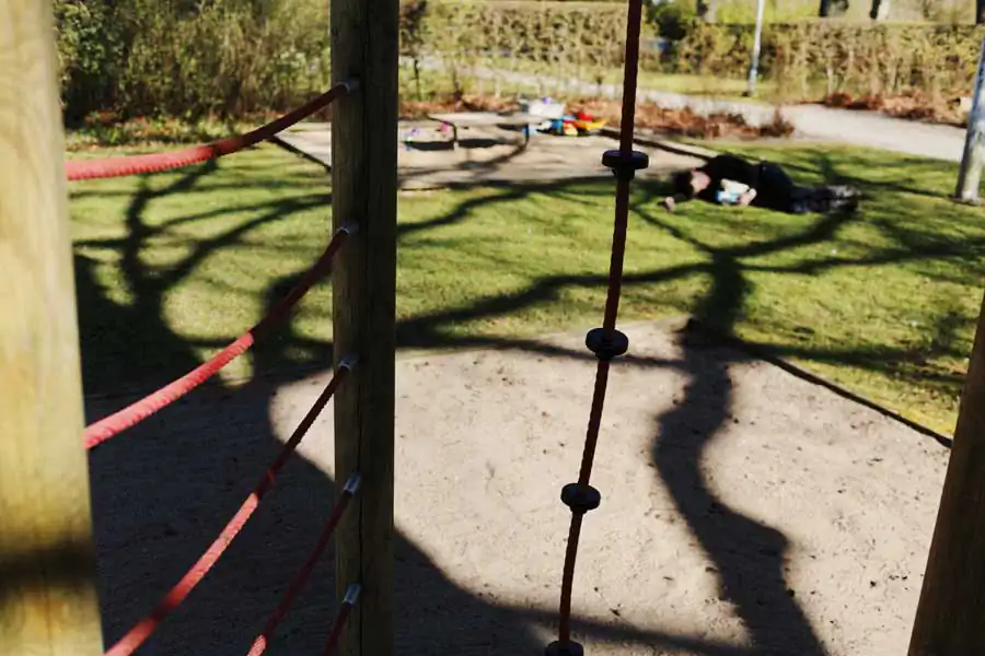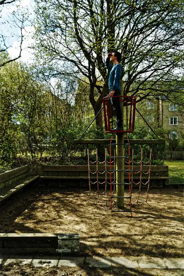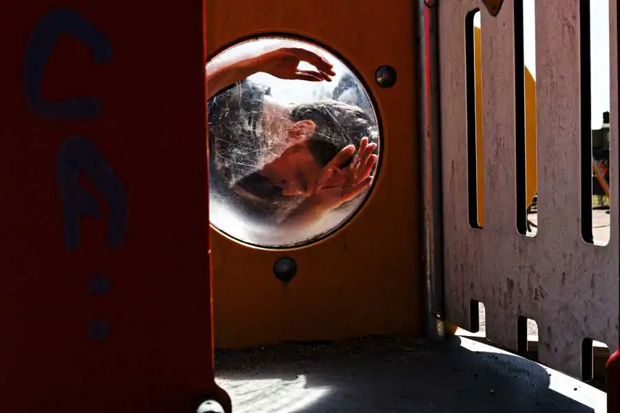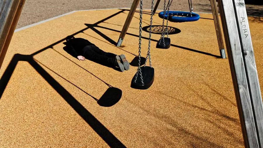 This series is deliberately opened to several interpretations. It shows a man roving among children’s games located in parks and schools.