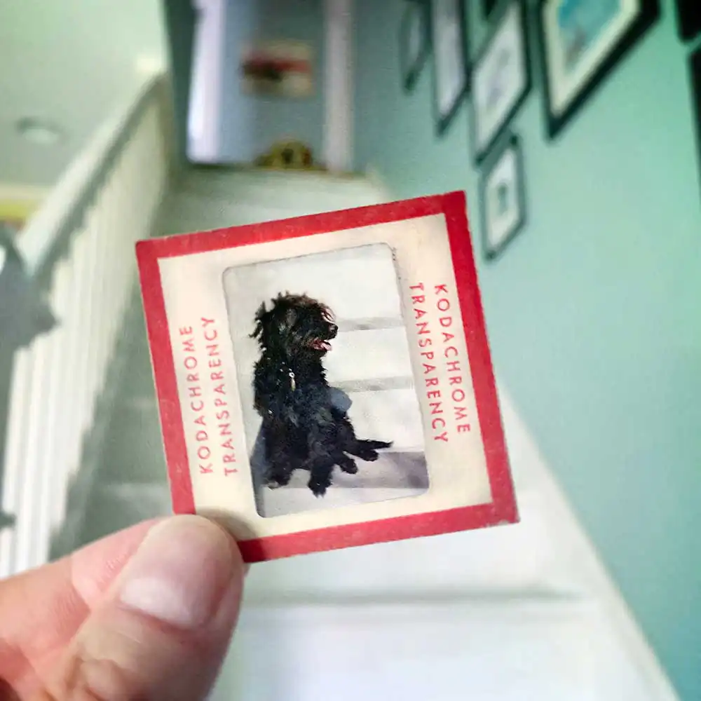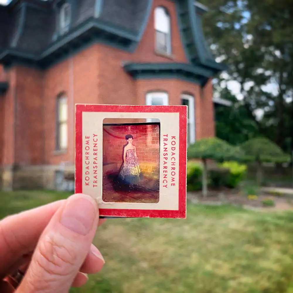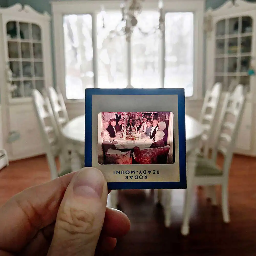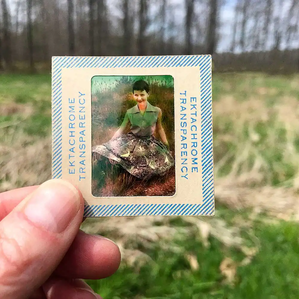 I realized that by placing the slides in my current landscape, I created not only a connection between his life and mine, but a trail of memories, each that had its own association for both of us. A lot of these slides are of my mom, they were together almost 60 years. She passed away recently and I feel like her spirit, and all the spirits of the past, are around us. These little vignettes of family life in my current “space” comforts me that she and others are still near, watching over me. They create a “home” for me wherever I go.