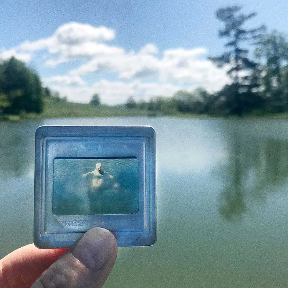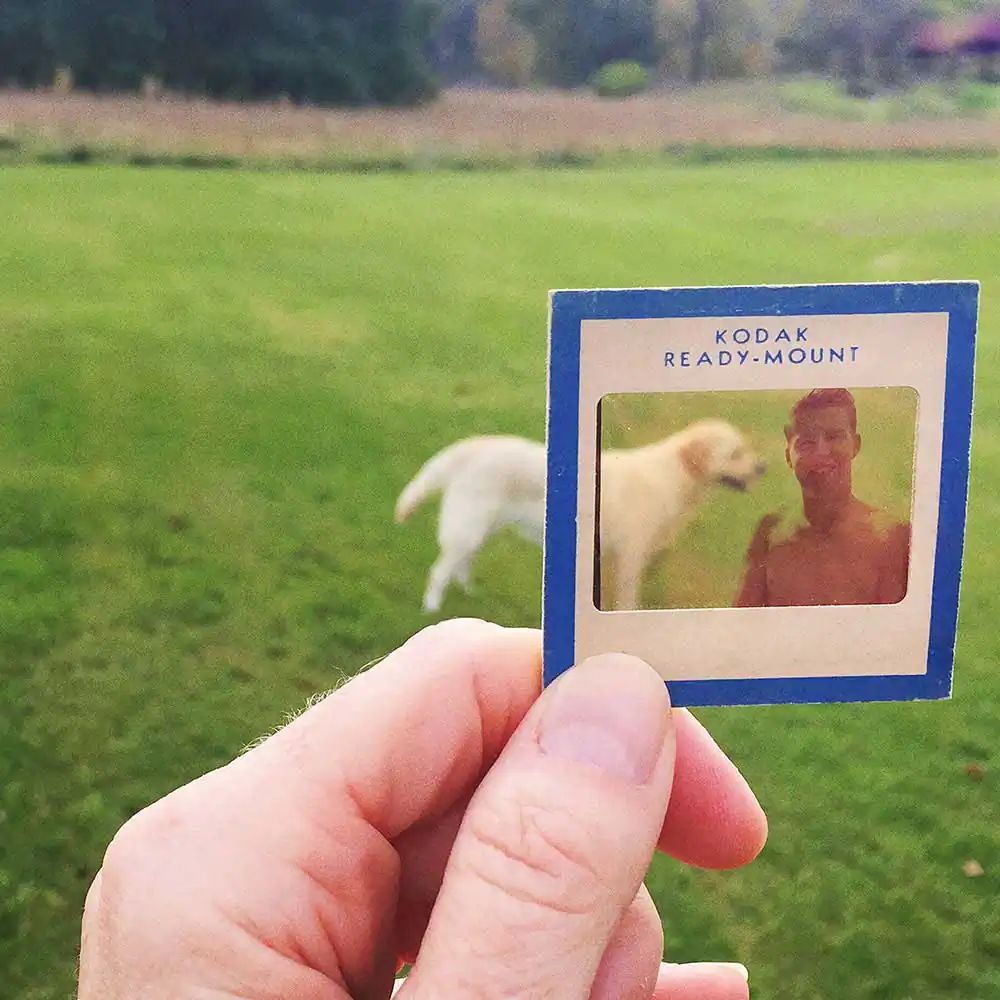 I did not want to Photoshop that connection. Part of the process that was necessary for me was to find the right location and feel my dad’s slides united with how I live today – a place within a place, a memory within a memory.