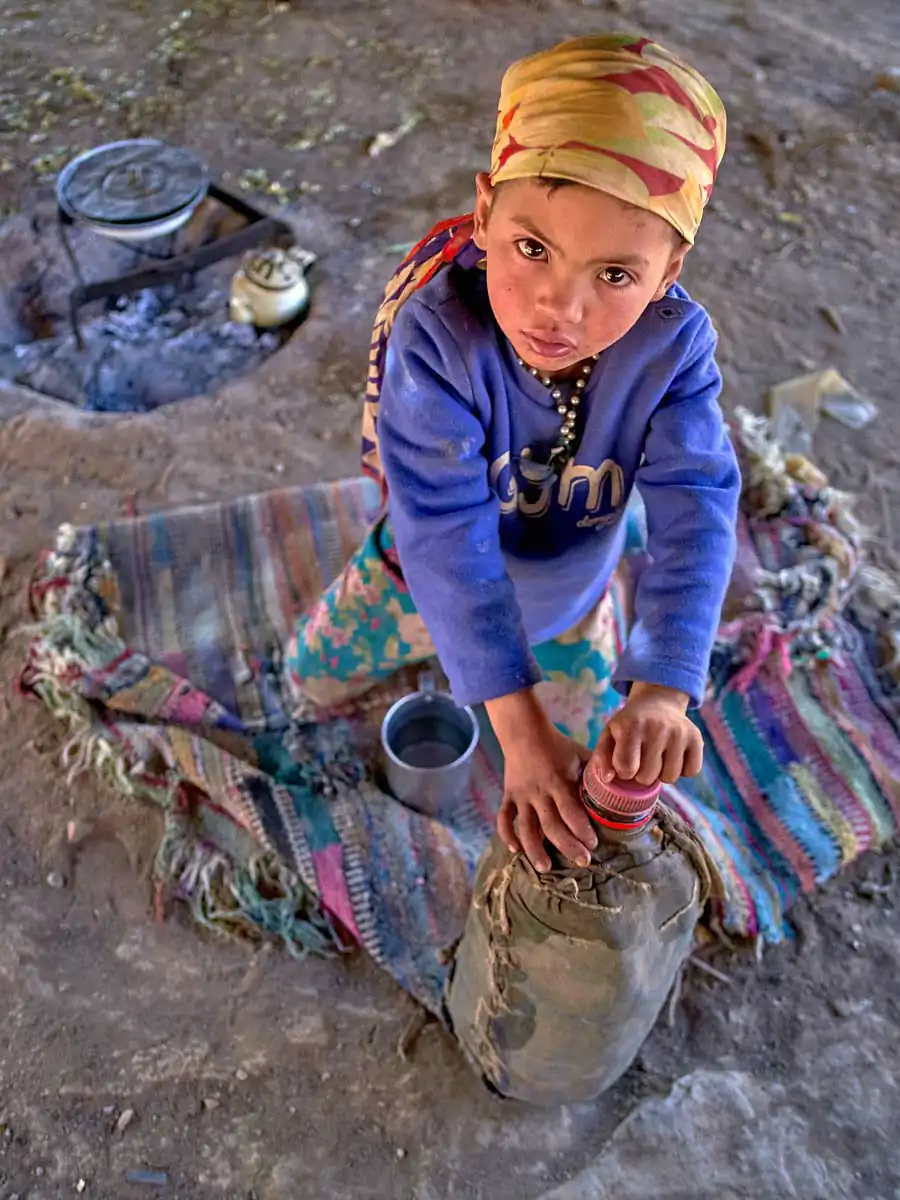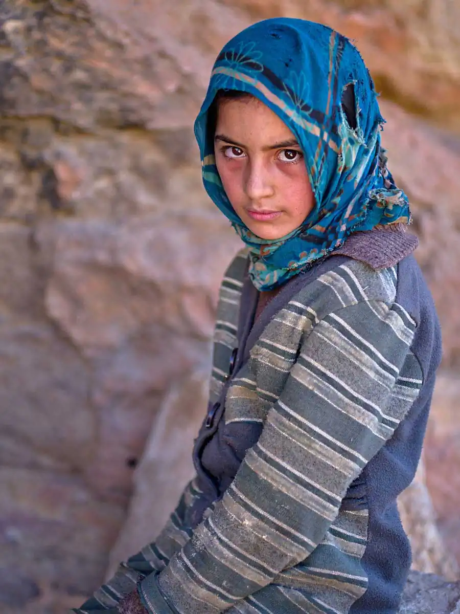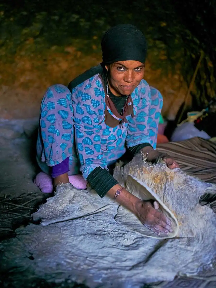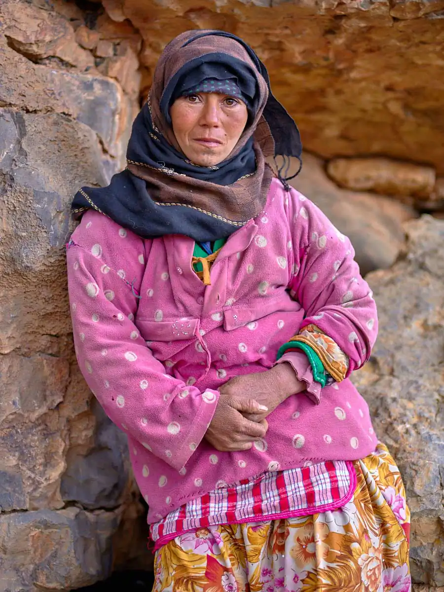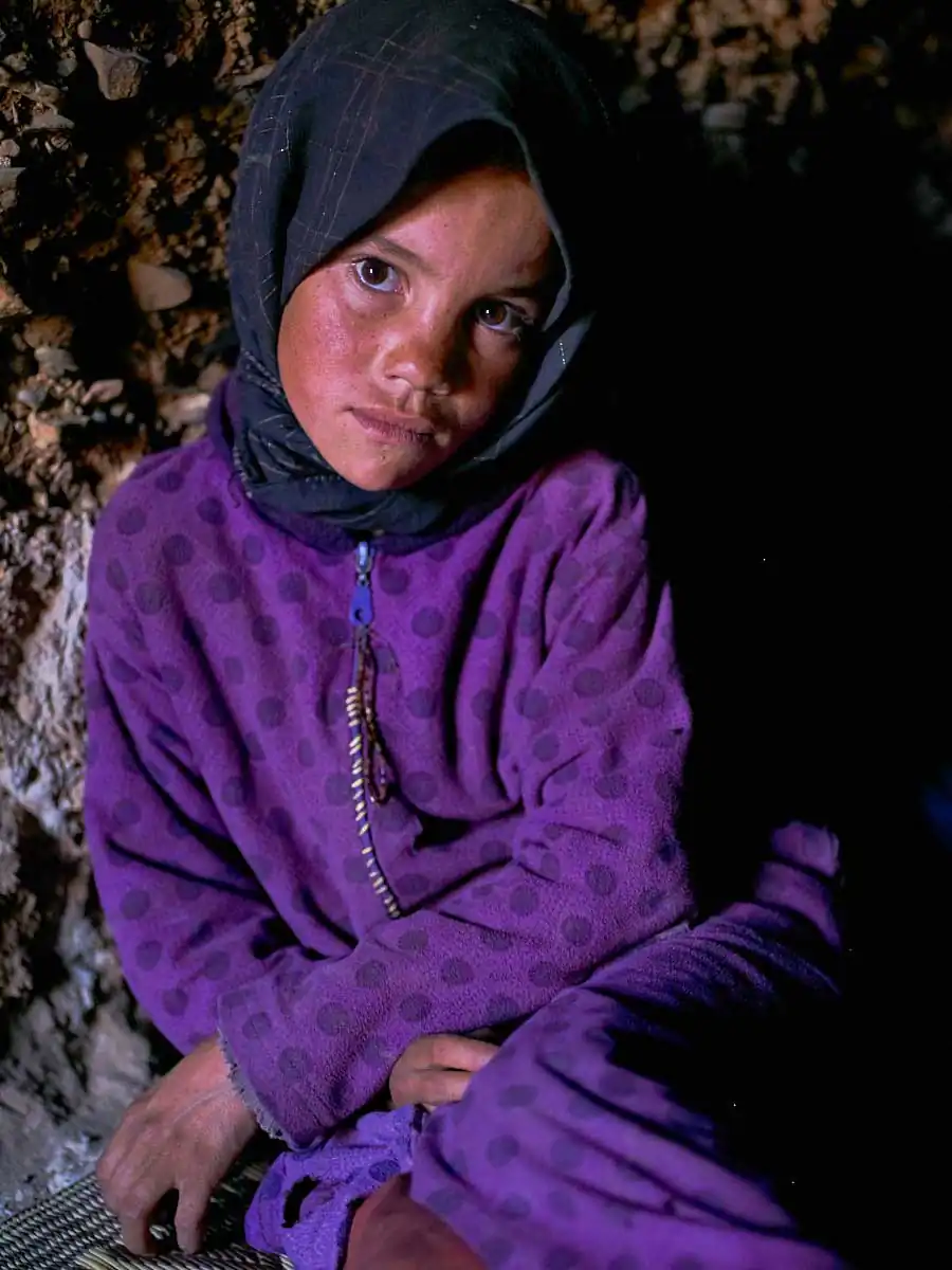 For nomad women life can be especially difficult. Starting their days at the crack of dawn when they leave their caves or tents to wander around the nearby mountainsides collecting water and wood on foot it can be several hours to amass what they need. Their existence is also one of isolation with limited contact to the outside world unlike the menfolk who travel to nearby villages and cities to shop for their daily necessities.