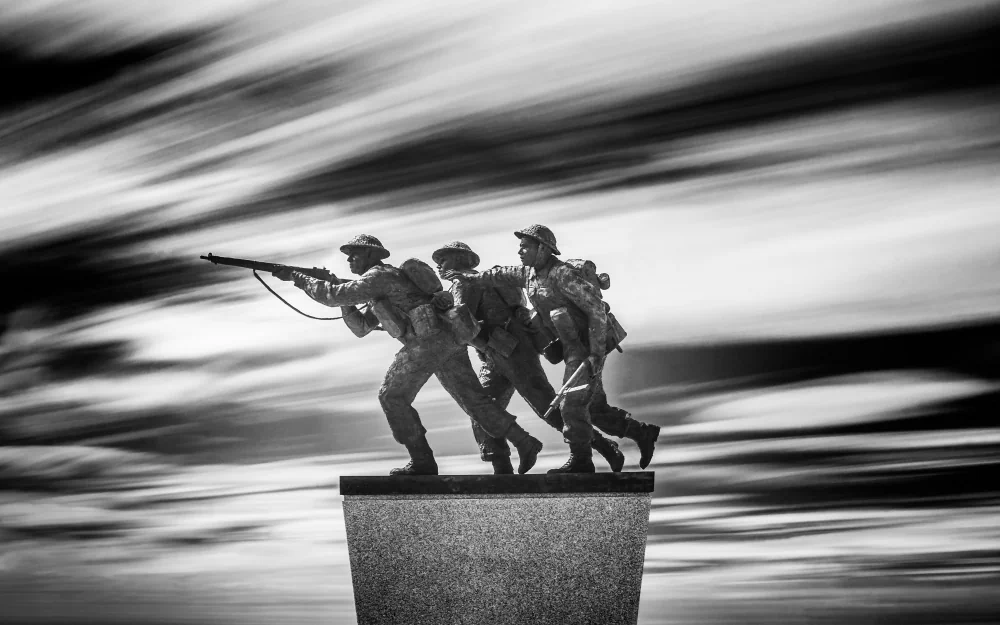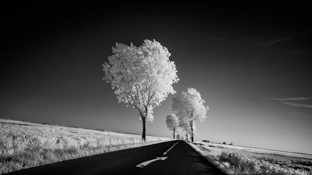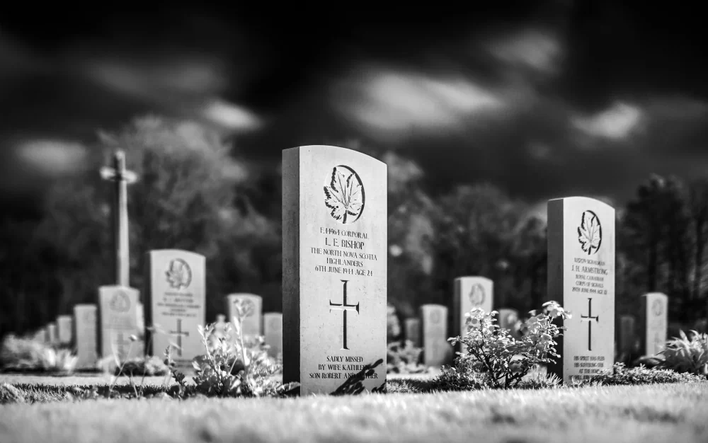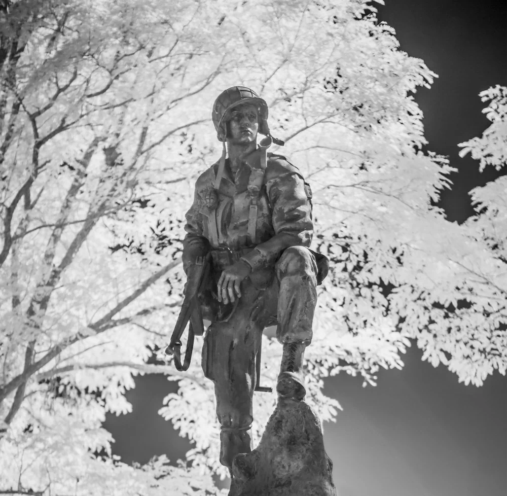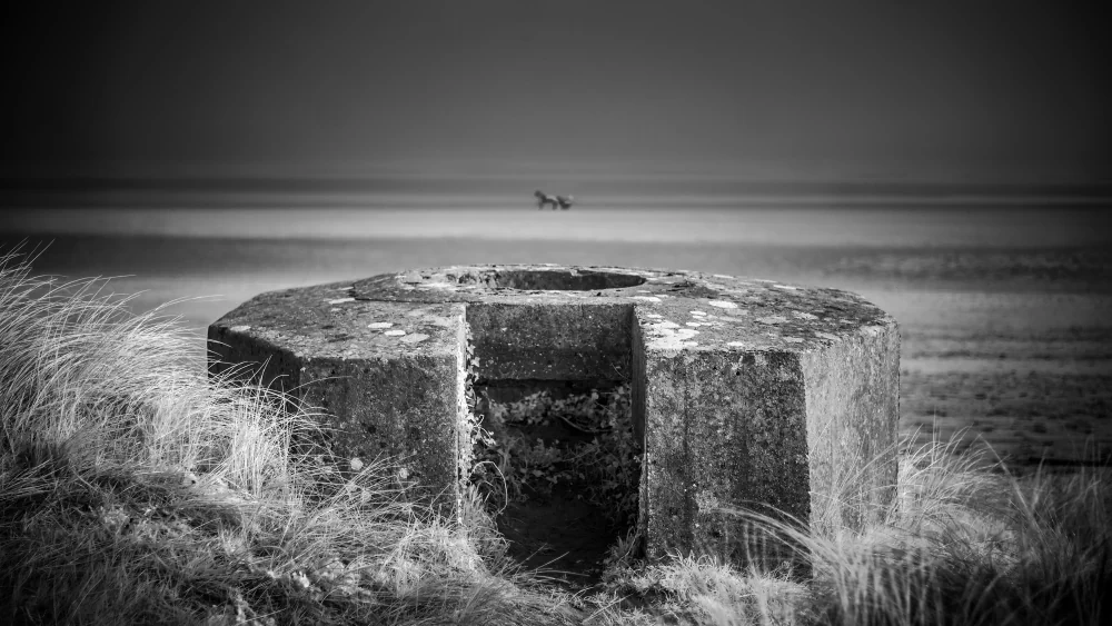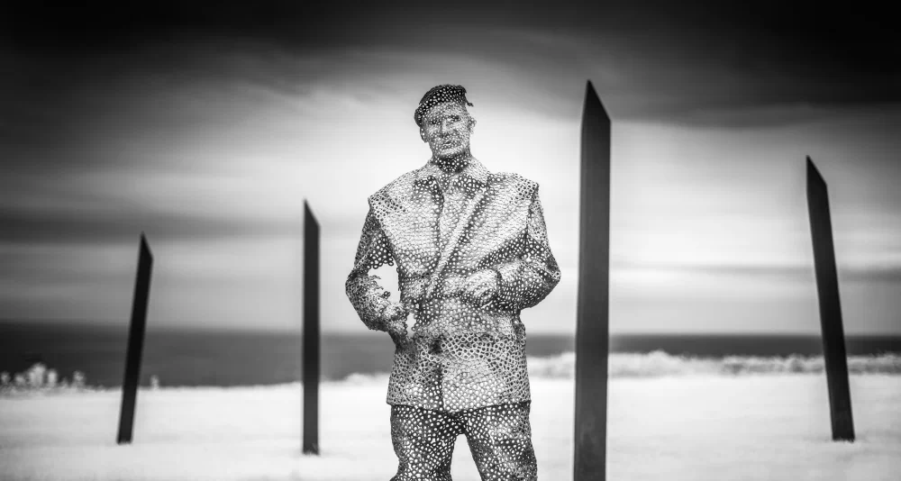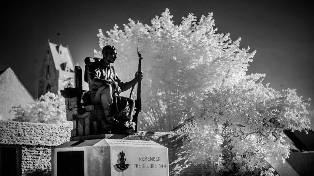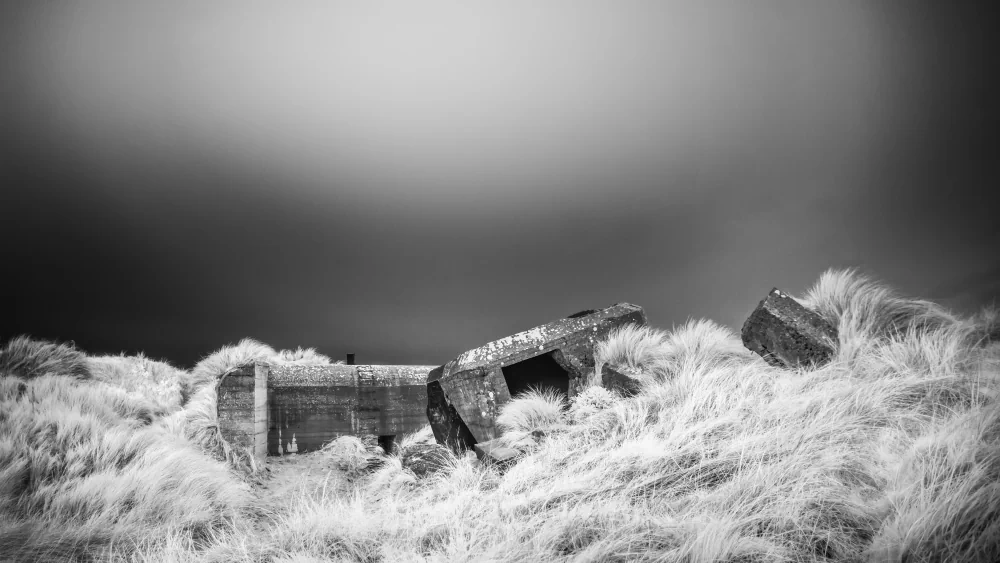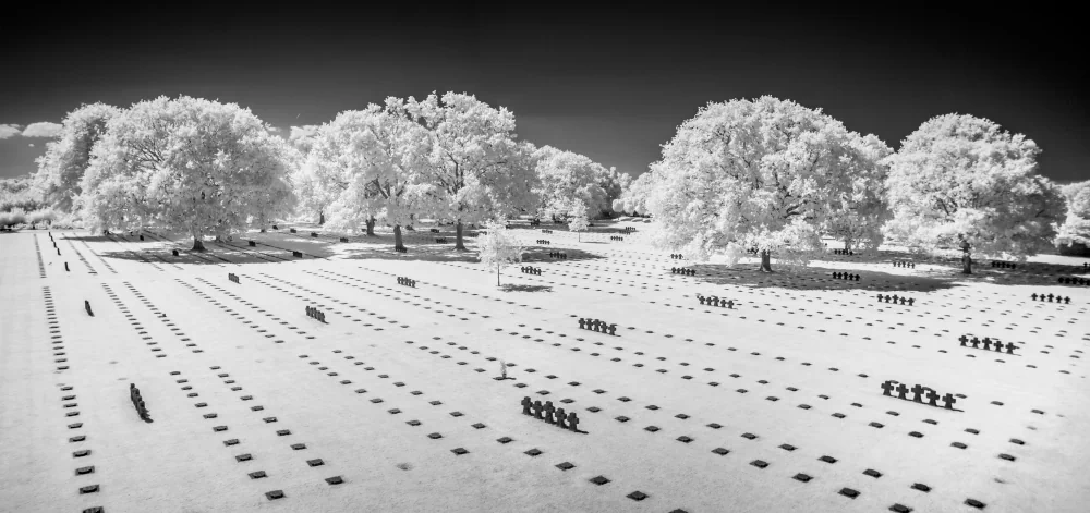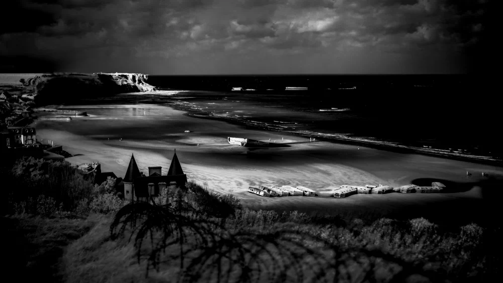 It is here, amidst this hallowed ground, that the lens of infrared photography unveils a perspective rarely seen. The Normandy landscape reveals itself in a new, poignant form. War cemeteries, wide beaches, and stoic memorials, all rendered in high-contrast black and white, are like dreams that bridge the chasm between then and now. Every click of the shutter captures not only the contours of the land but also the spirits of those who gave everything for a cause greater than themselves. The interplay of light and shadow evokes a sense of timelessness, bridging the gap between past and present, between tranquility and tumult, between serenity and struggle. The lush greenery, once scarred by the violence of war, now stands as a testament to nature’s resilience in the immaculate, clean white of infrared alchemy.