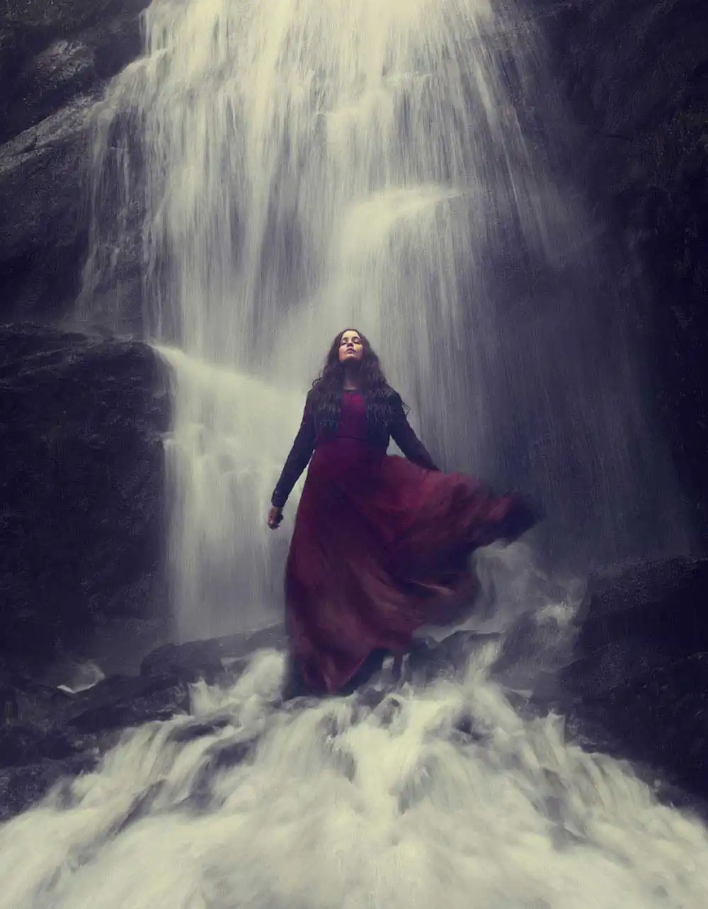 The images were taken in both Norway and Sweden. To create the images Maren used a tripod and a remote control, and worked exclusively with natural light. She photographed while standing in waterfalls in the summer and on frozen lakes in the winter. [Official Website]