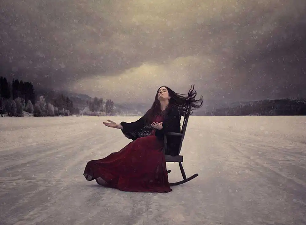 Northern Gothic is a collection of carefully staged self- portraits in addition to a portrait of Maren’s own daughter, Emily. The connection between the human mind and nature is a reoccurring theme in her work. She grew up in a small town outside Oslo and was surrounded by the harsh but hauntingly beautiful Norwegian nature. With this body of work she explores how her surroundings has affected her.