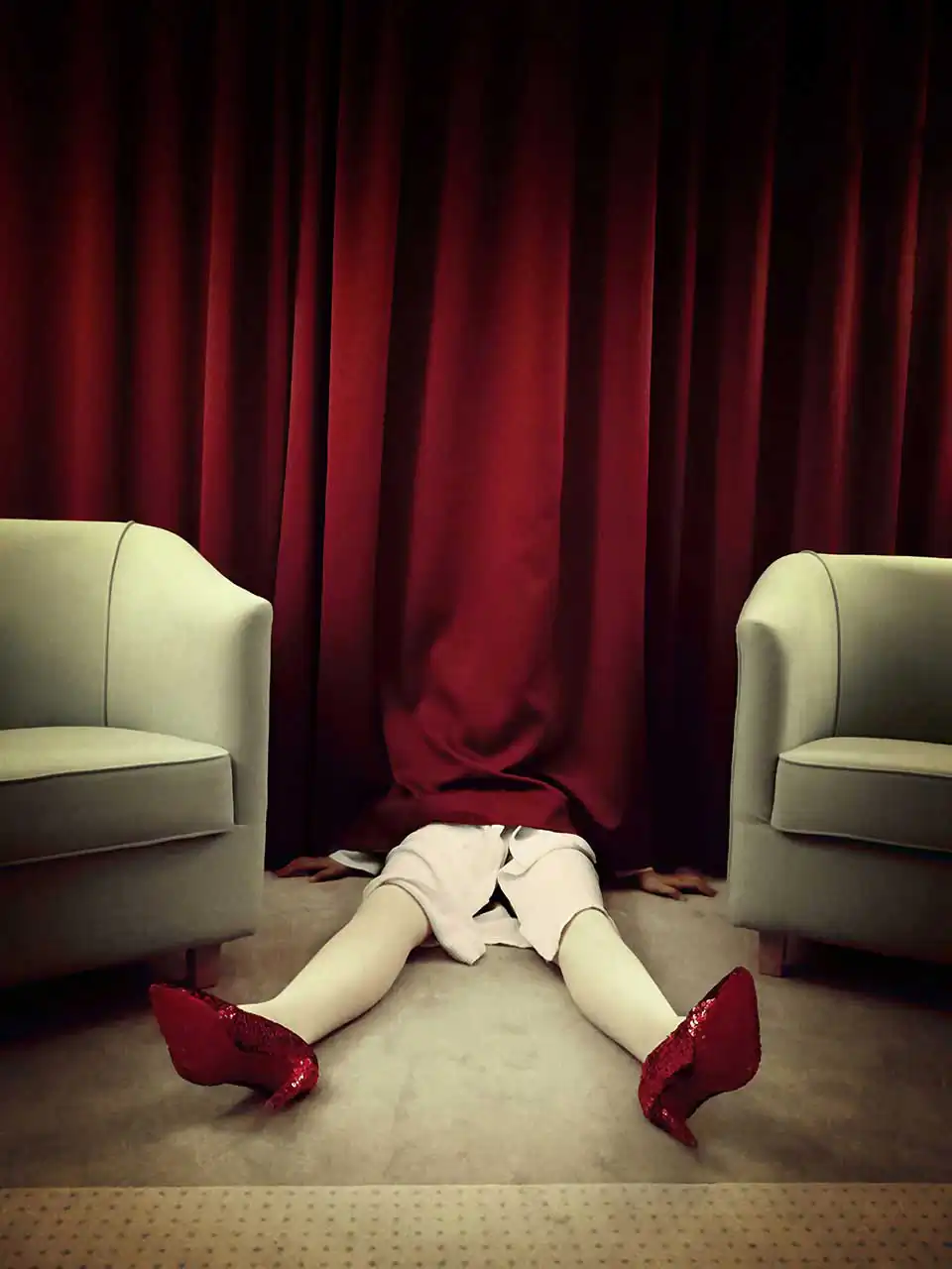 Each image is staged in different locations and contexts to explore and illustrate and emphasis these themes. Without being overtly prescriptive, each scenario asks questions to which the answers depend on the viewer’s own personal perceptions. The images are composed to simulate a sense of simultaneous coalition of elements of a before or after moment, with a deliberate ambiguity which only the viewer can resolve and further contextualise. [Official Website]