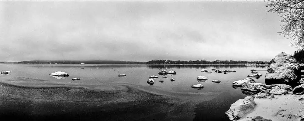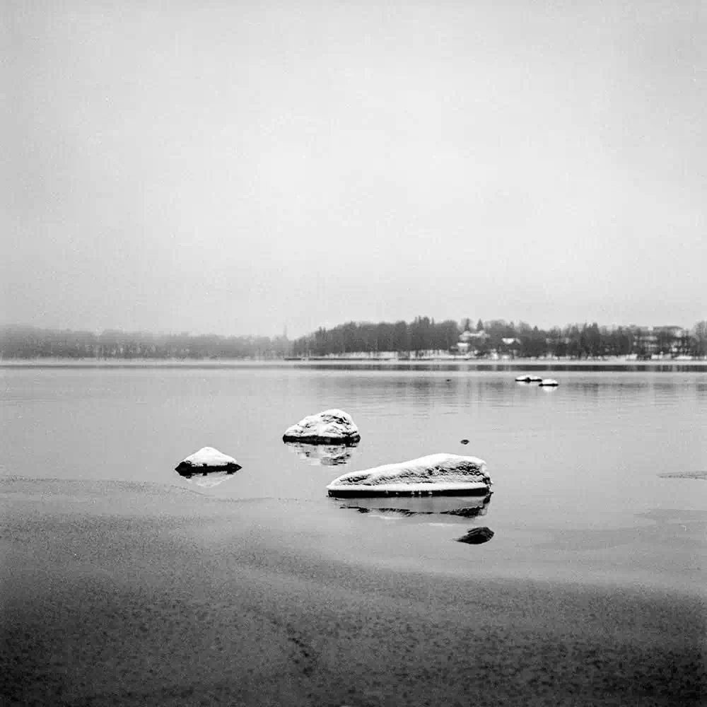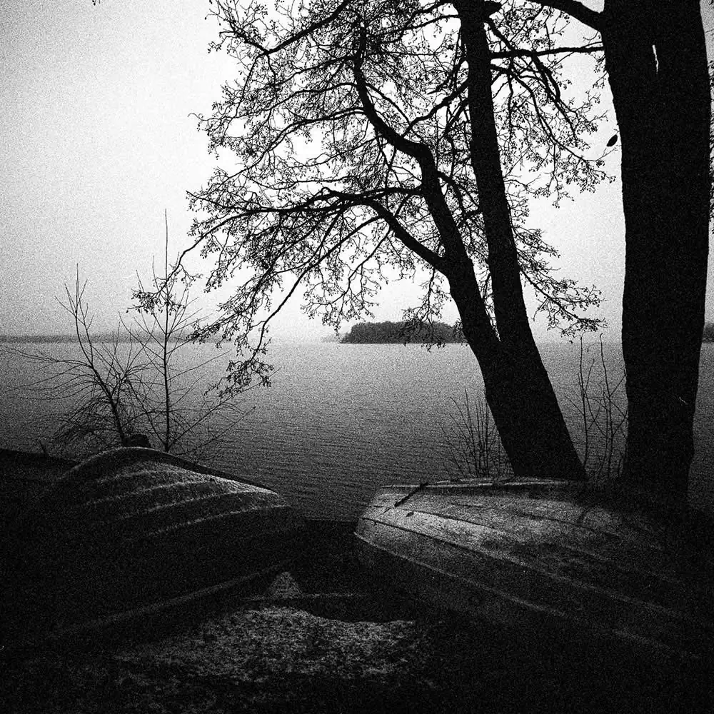 My means to enjoy November lakes are simple. I put on my raincoat, comfy shoes, select a fast film and head out. I feel that November is best captured with all the grain and blemishes from a black and white film pushed to the extreme and from old mechanic cameras that don’t apply any beautification to my pictures. Through these simple means, I truly enjoy the quiet and dark November days. They don’t shout, they whisper.