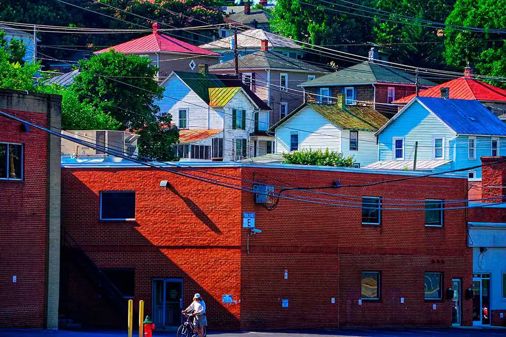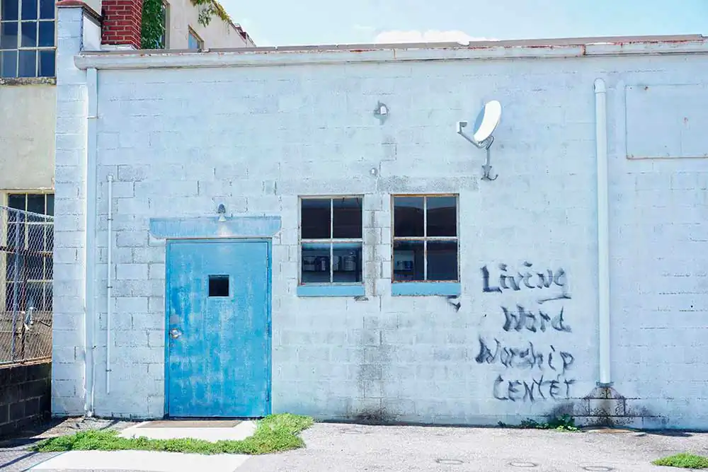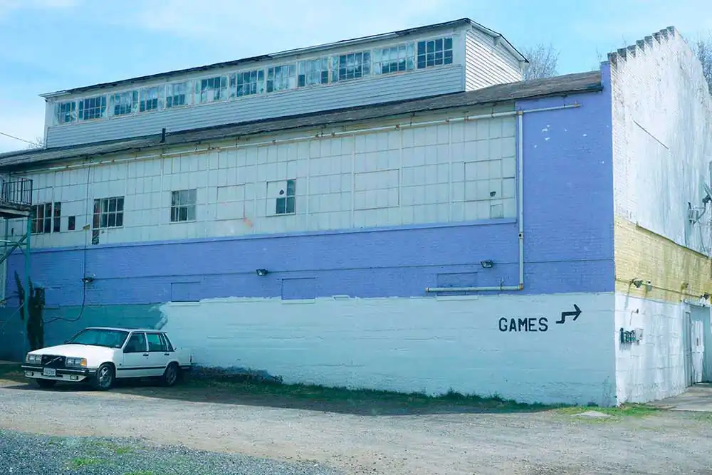 The theme of the collection is “odd buildings,” whether they’re odd for their paint job, their architectural design, their graffiti, or their relation to other buildings.