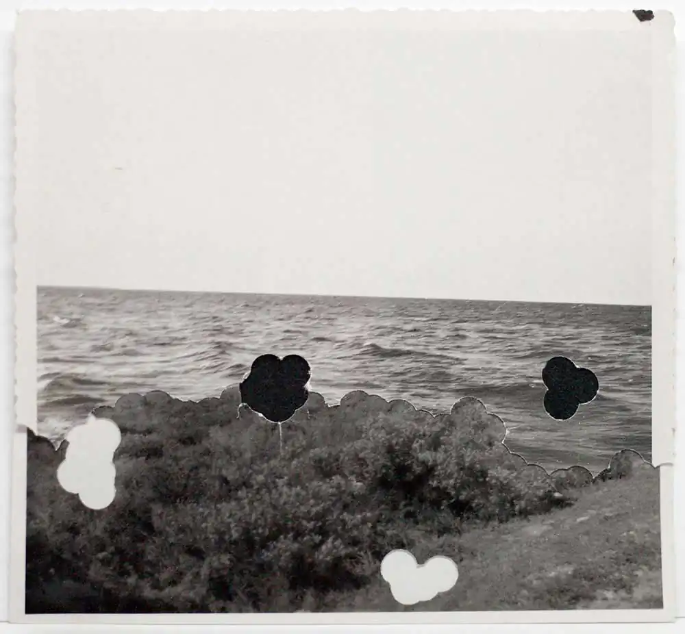Home is the center-weight of England’s artistic practice, with memory and forgetting being the counterbalances. Her photographs are fragile, contemplative and temporal spaces. The Outskirts is a re-presentation of the artist’s family album; original vintage snapshots enlarged and obscured by the original photo album pages from which they were excavated. The meaning of the photographs are thus transformed, with the focus being on the peripheral and the edge.