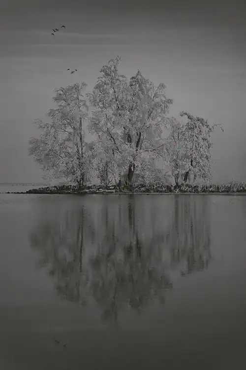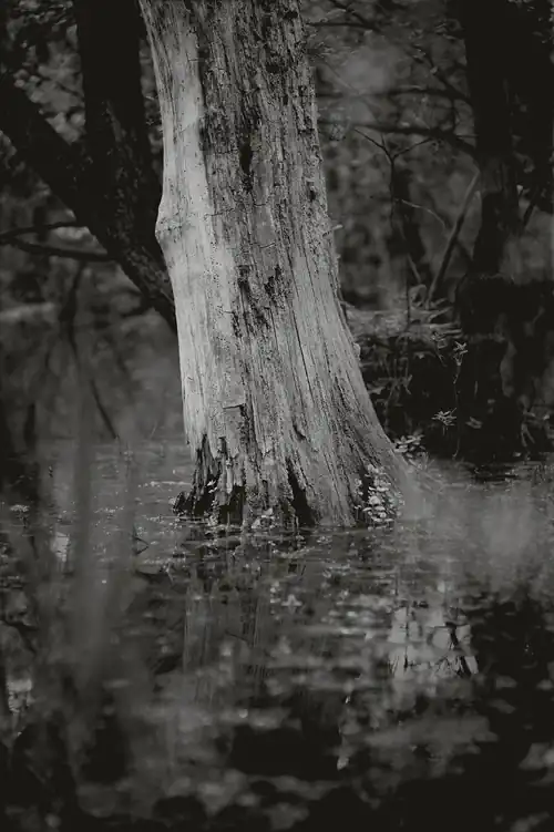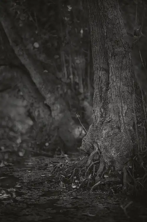 A lot of my images are shot at a place called “Quakjeswater”; a nature reserve in the coastal area in the southwest of the Netherlands. It is a dune lake that dates back to the 17th century. A damp wood has since formed around the lake. During the winter trees stand in small ponds, they then dry up during summertime. It is a dark and quiet place and when you arrive early in the morning it is possible to encounter deer. It is a landscape of stillness and solitude.Edward Steichen images have been the greatest inspiration for me. I have tried to emulate his use of dark tones and forms. In the early stages i experimented with old printing processes such as gum-bichromate and photogravure to achieve the same richness found in Steichen’s images.