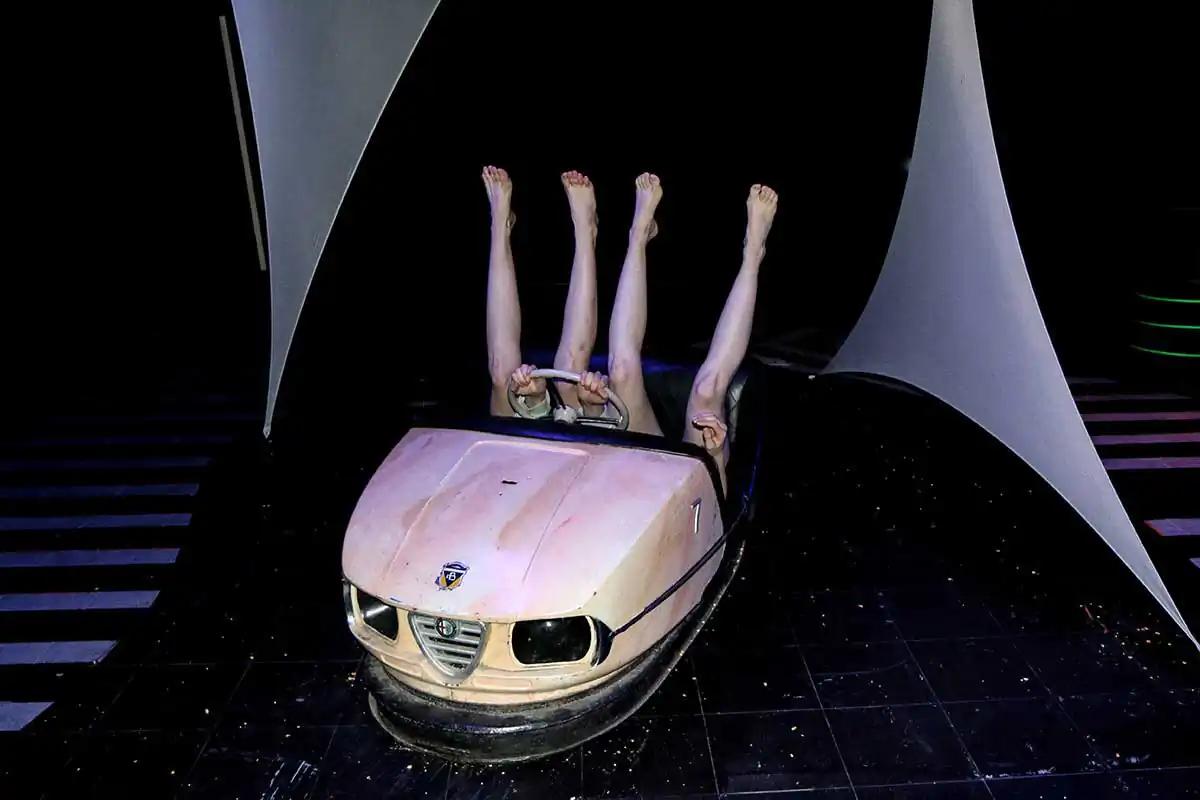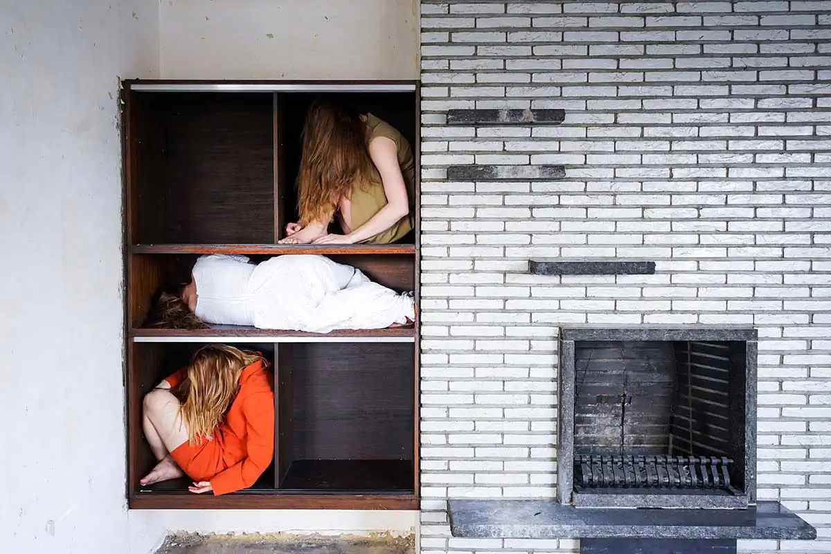 Playfully contorting and directing her subjects, she regards her pictures as choreographies. The focus is on the body in space, the gesture, the colors, the clothes and the setting, as well as the emotion their combined atmosphere creates. This way, choreography evolves into a still life of abandoned gestures – sometimes fragile, sometimes absurd – quietly forming an enchanting story. It is left to the viewers to discover the deep emotions hidden within her character’s bodies. [Official Website]