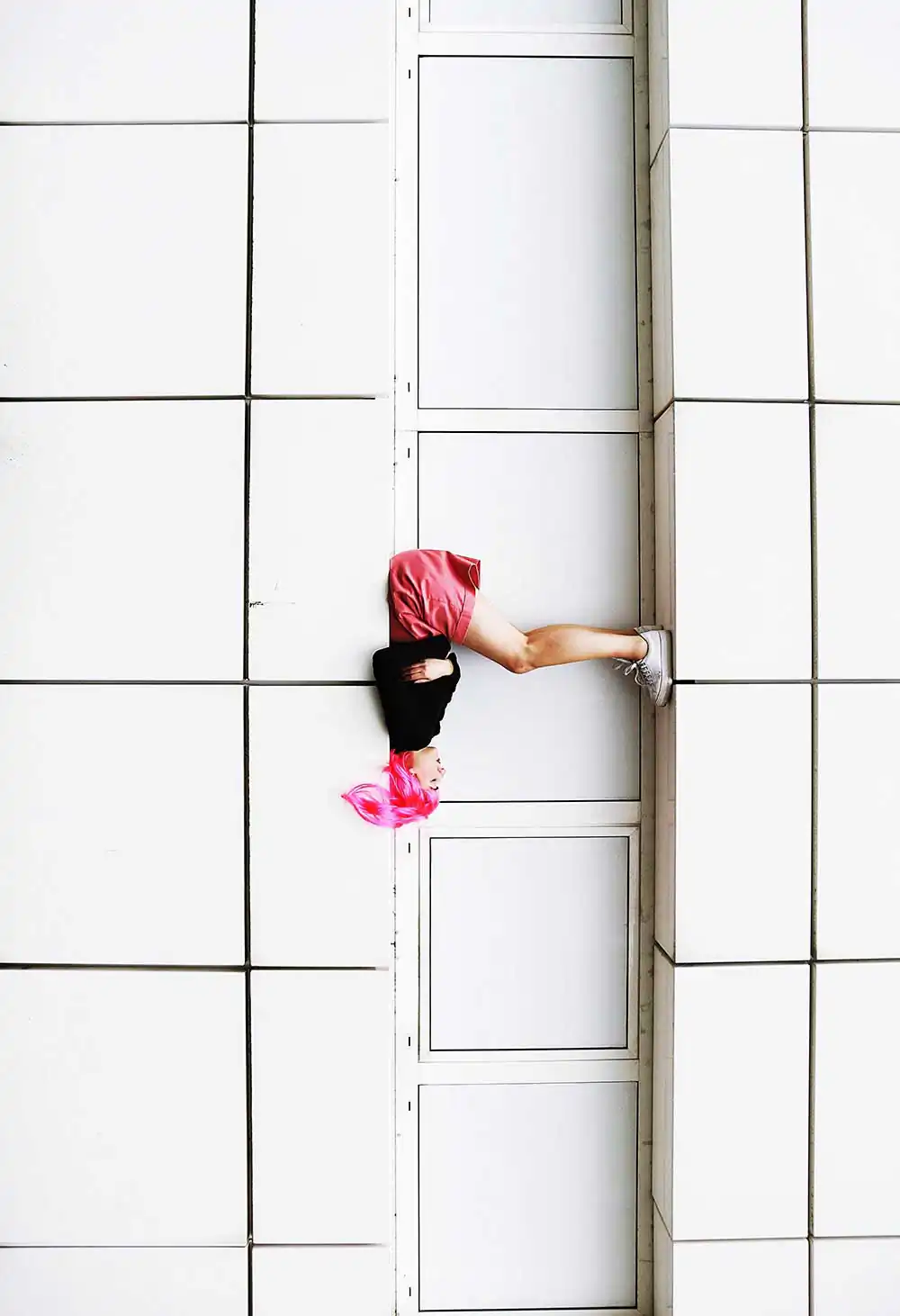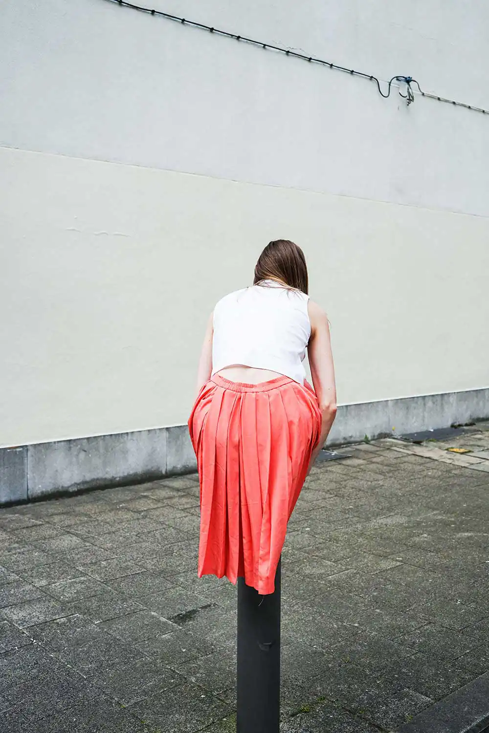 Her pictures strive to illustrate the inescapable search for self-discovery and identity; and through her work she highlights that every human body carries a story with it. A body never lies. Every small movement tells something, even if we are often not aware of it. And it is these nuanced truths that our body reveals, that Olympe tries to explore, interpret and capture in her photographs. Playfully contorting and directing her subjects, she sees her pictures as choreographies. The focus is on the body in space, the gesture, the colours and clothes, the setting and the emotion their combined atmosphere creates.