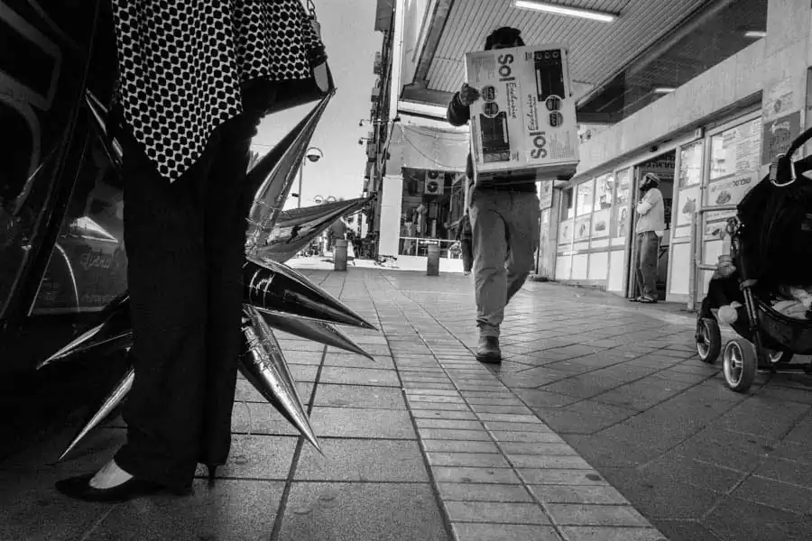 When Omri go out to the street he work by instinct and emotions. sometimes he simply feel that it is the right time, or the right situation,stops, and take photos, and sometimes he paint a mental picture of a situation which could be particular to the place where he standing, and he wait there. Sometimes it is very surprising, and exciting, that a person who you think might, perhaps, pass by, does in fact pass by right there. Then everything fits into place. The technique is sometimes just patience, according to Omri.