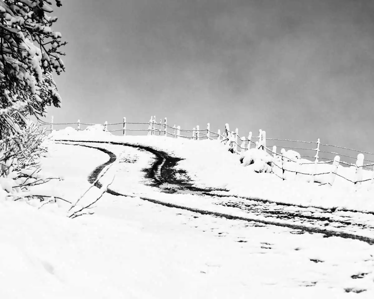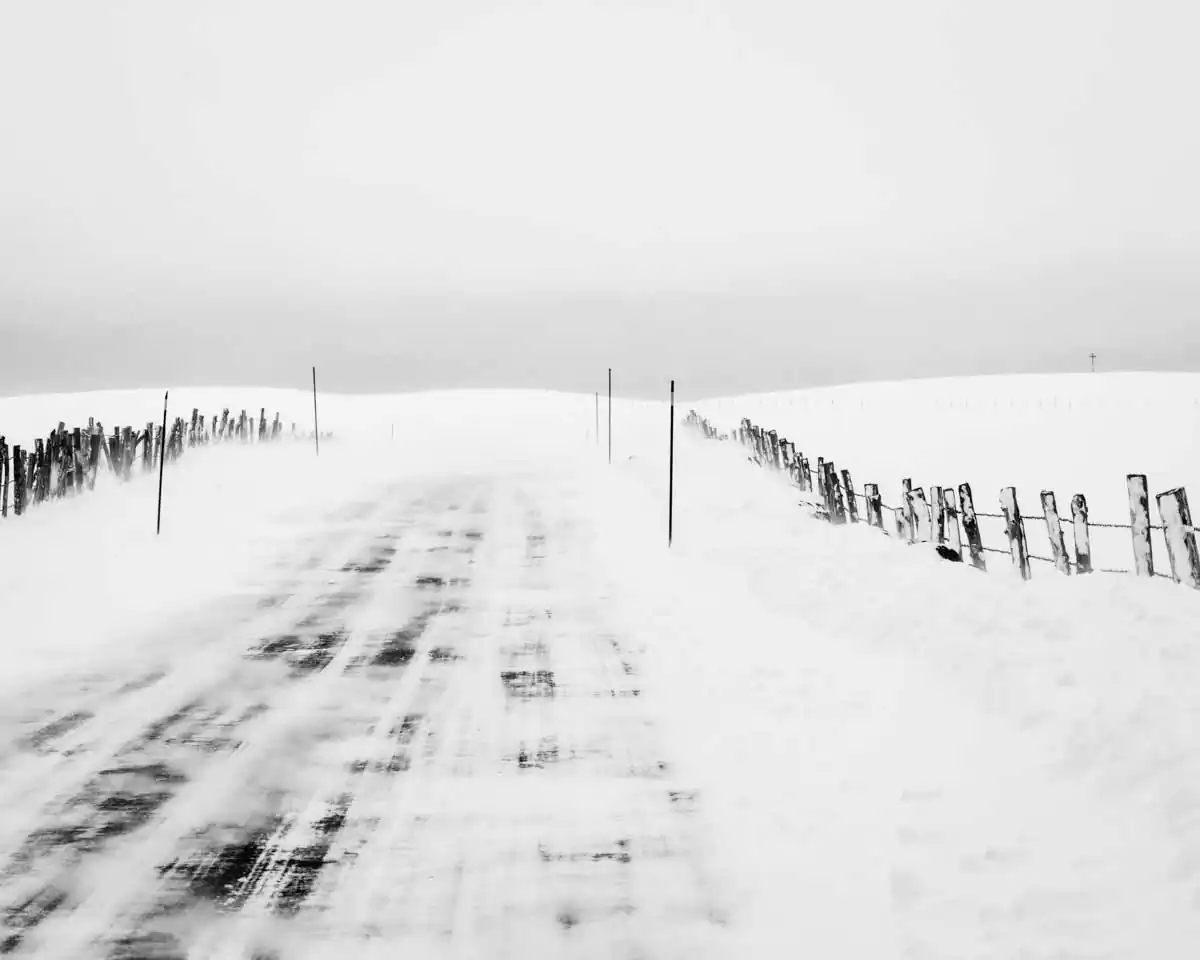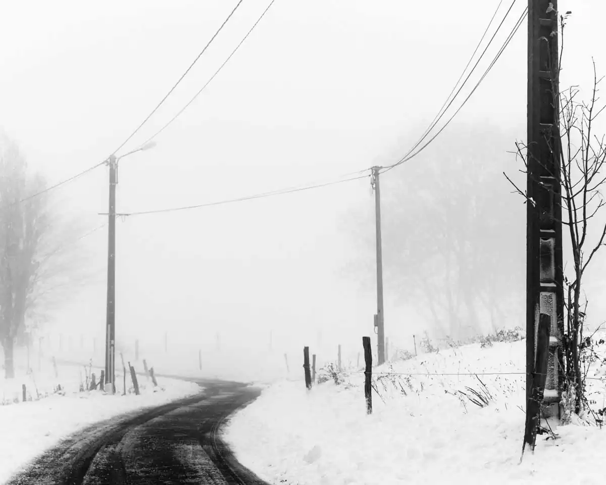 These photographs tell stories of erased roads. Disappearing and appearing to the rhythm of snow and wind. They were roads, they become graphics. They tell stories of anonymous roads, which come from nowhere, which go somewhere; which come from somewhere, which go nowhere. They tell stories of deserted roads, which invite you to a spiritual journey. Reflections on the direction to follow. Let yourself be guided through these mysterious and magical roads, let yourself go towards the unknown. Make up a story for yourself. Once upon a time a road…. [ Series produced during the last two winters (2017-2018 and 2018-2019)] (Official Website)
