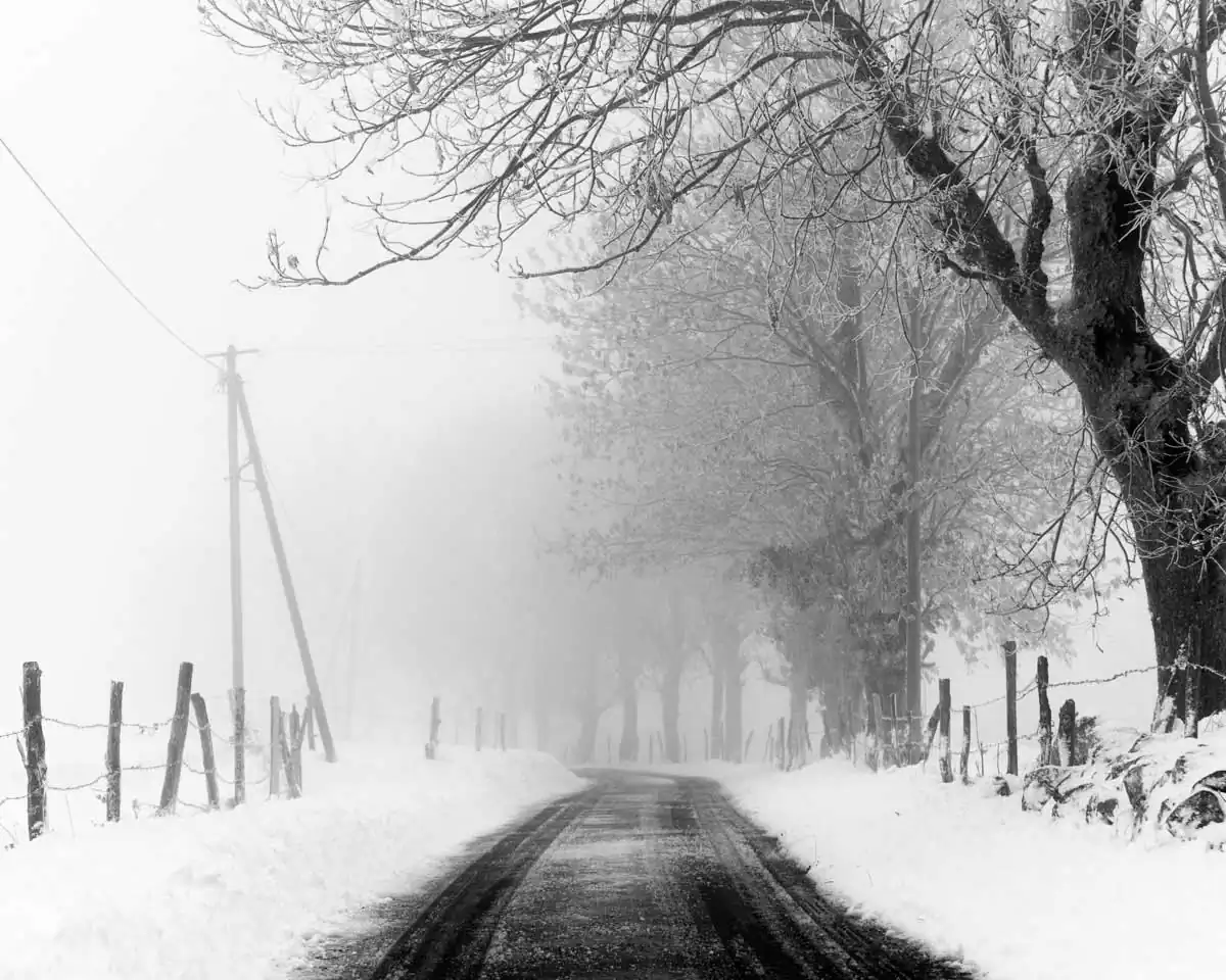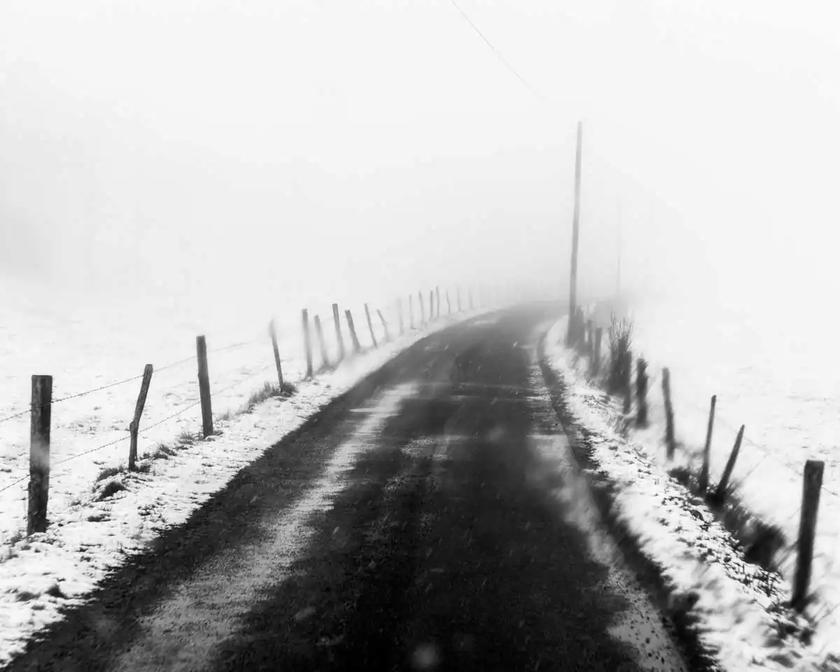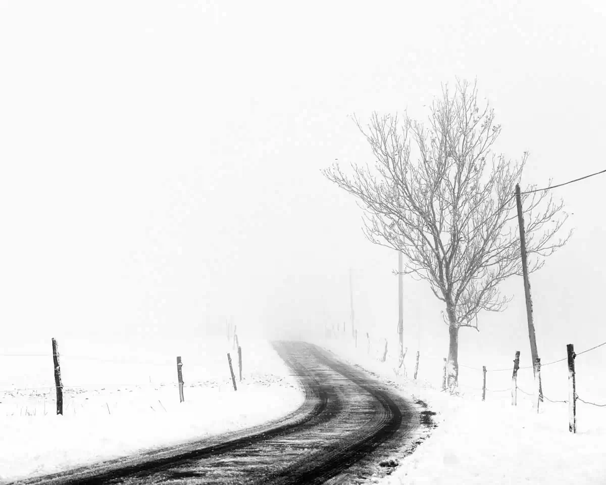 I am not a travel-lover; I photograph around me, in a small area around my home. I like photographing when weather conditions are bad (fog, snow, wind) and I try to express the strength of the nature and the beauty of those moments. In this work I photograph roads. Roads tell stories especially when it is bad weather. Listen to these stories, watch and let yourself be carried away.