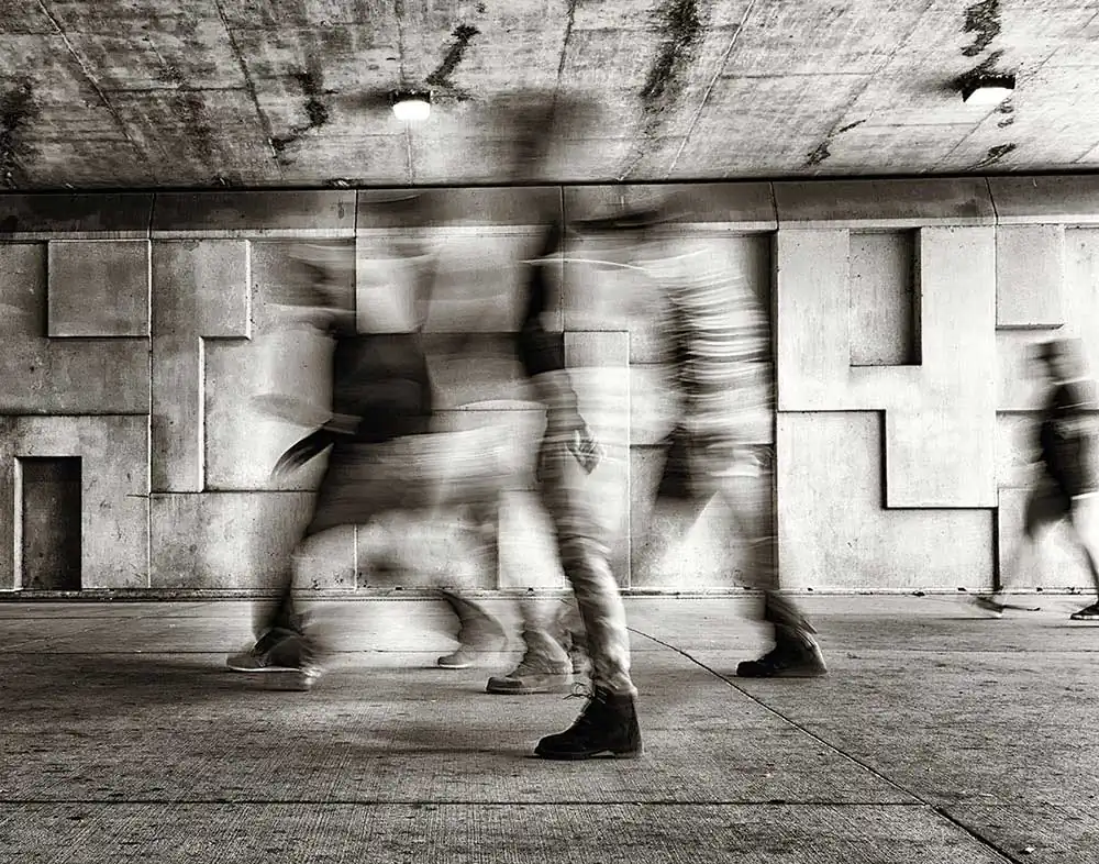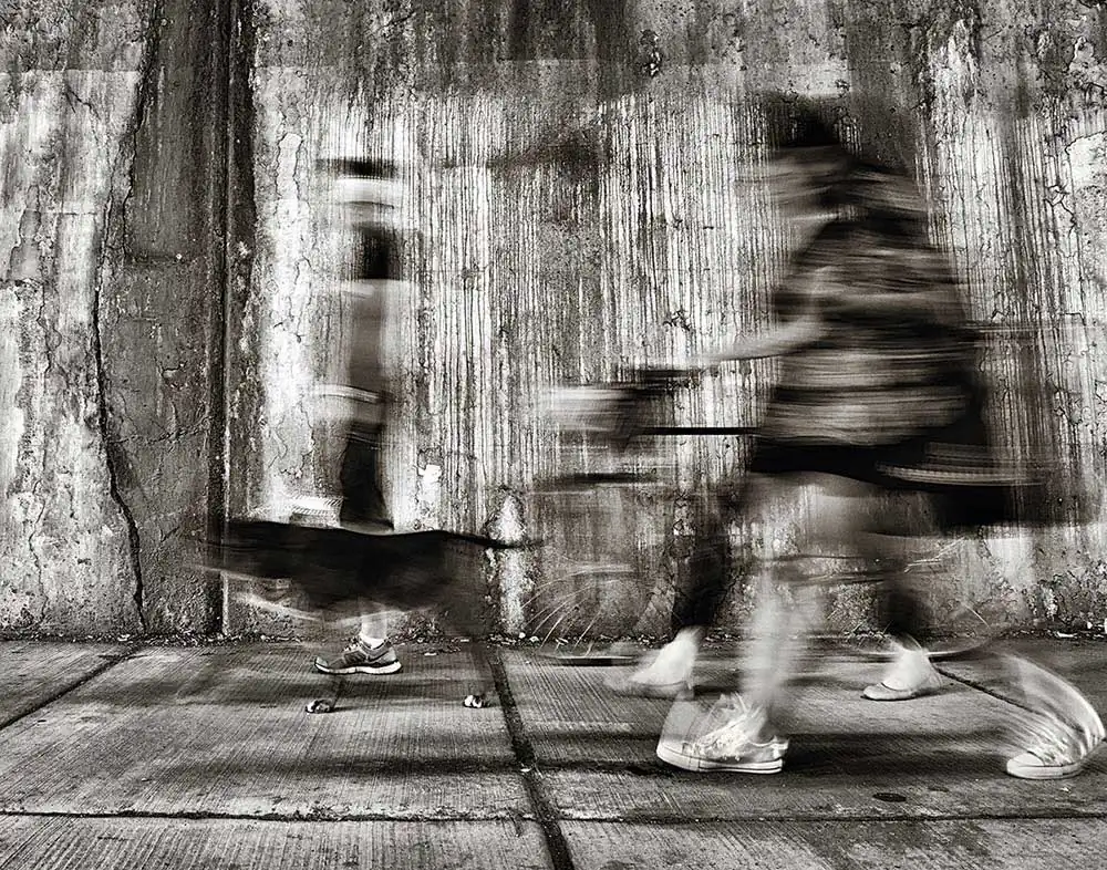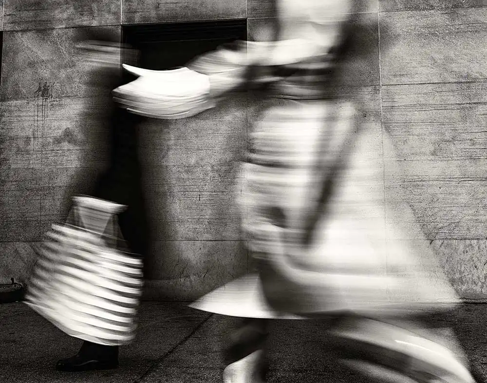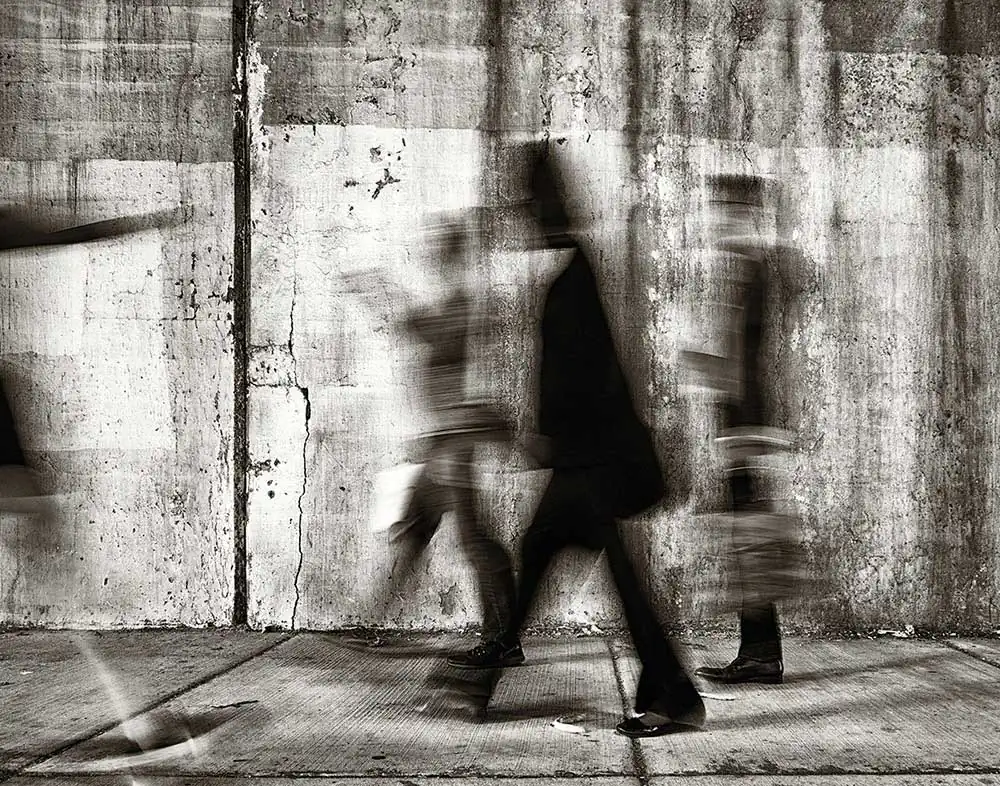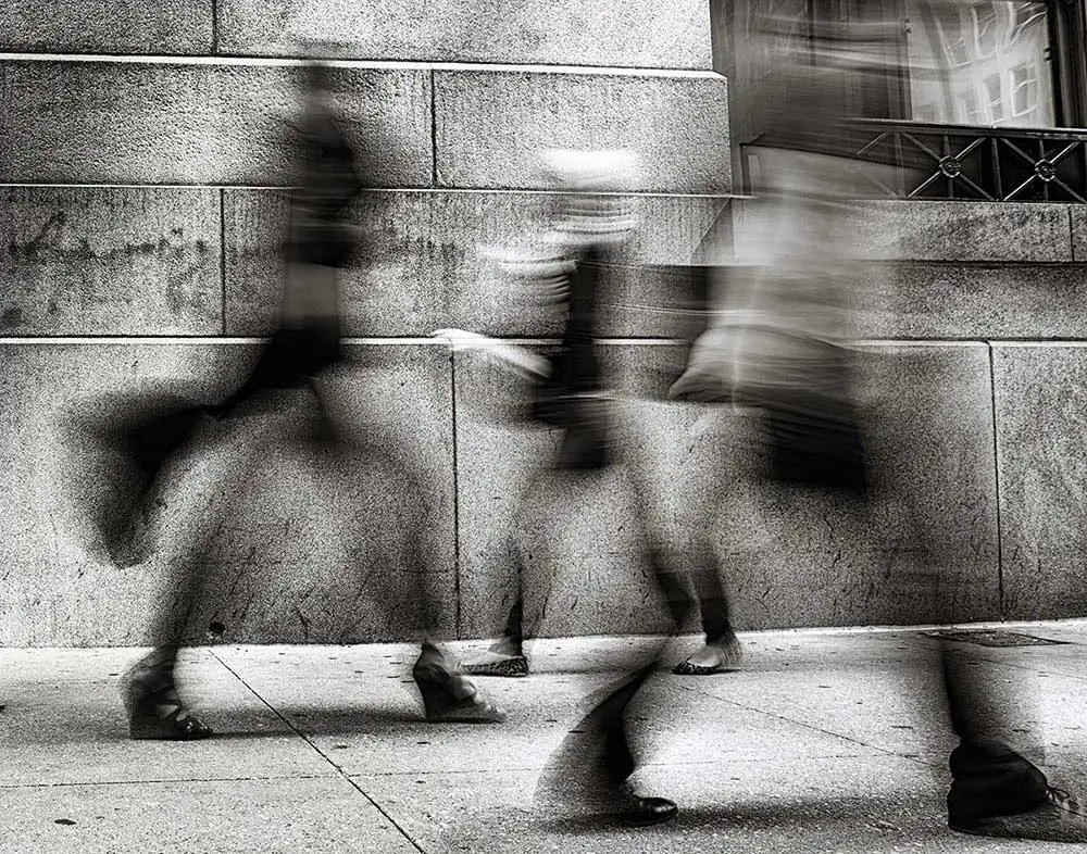 Street photography can be fascinating. I think it’s because we are naturally nosy. We want to stare, to absorb the details and imagine the facts. In real time, on the street, we only get a glimpse of passing strangers. We don’t have permission to stare. The great thing about a street photograph is that we have permission to stare. The subjects in one-sixth of a second are motion blurred. Motion blurring removes some of the detail we seek. It’s as if we have permission to stare, but only at what we might have perceived in a quick glance.Some of the images in the series are single exposures. In the others I have created a time-collage by combining two or more images from a single tripod-mounted sequence.