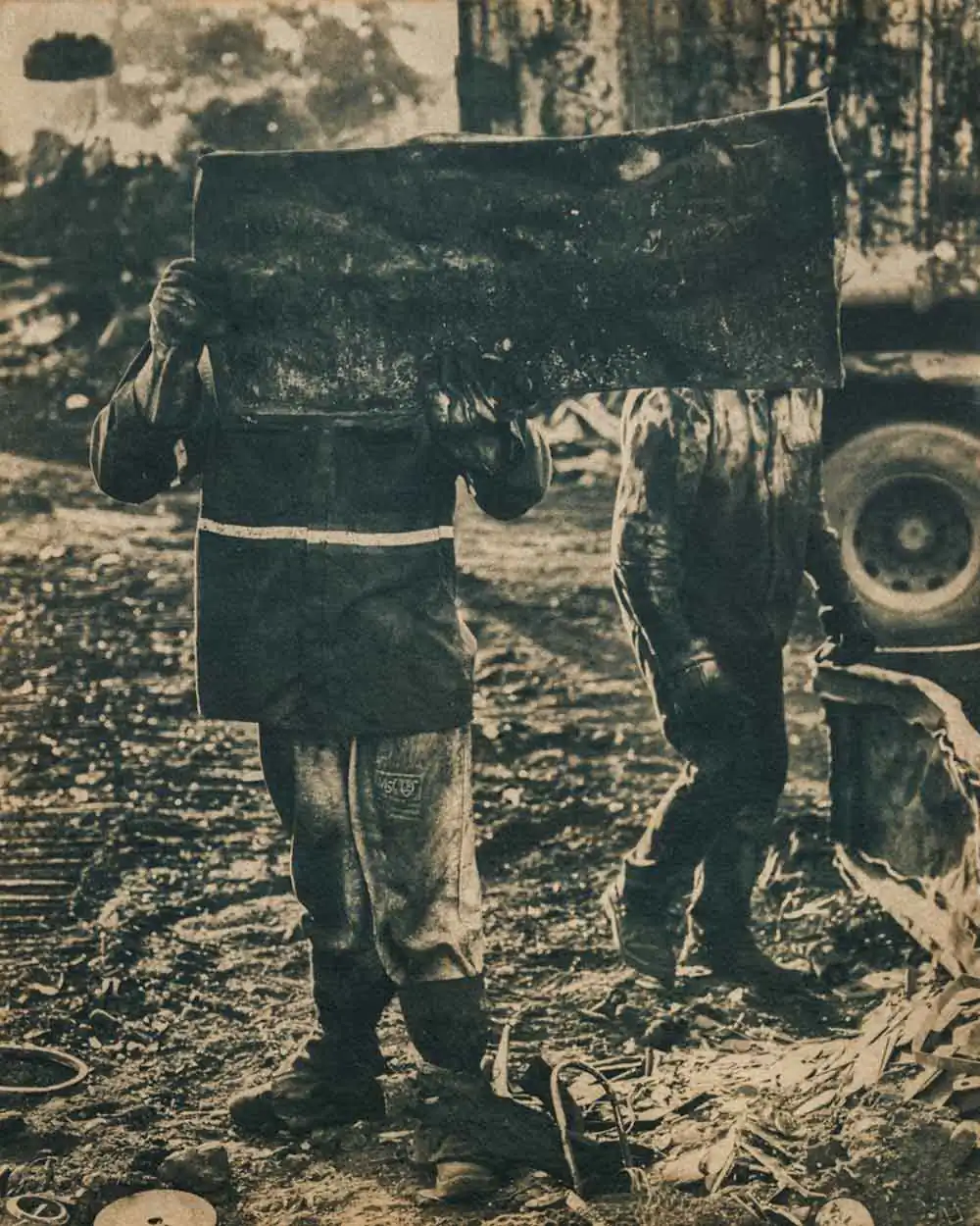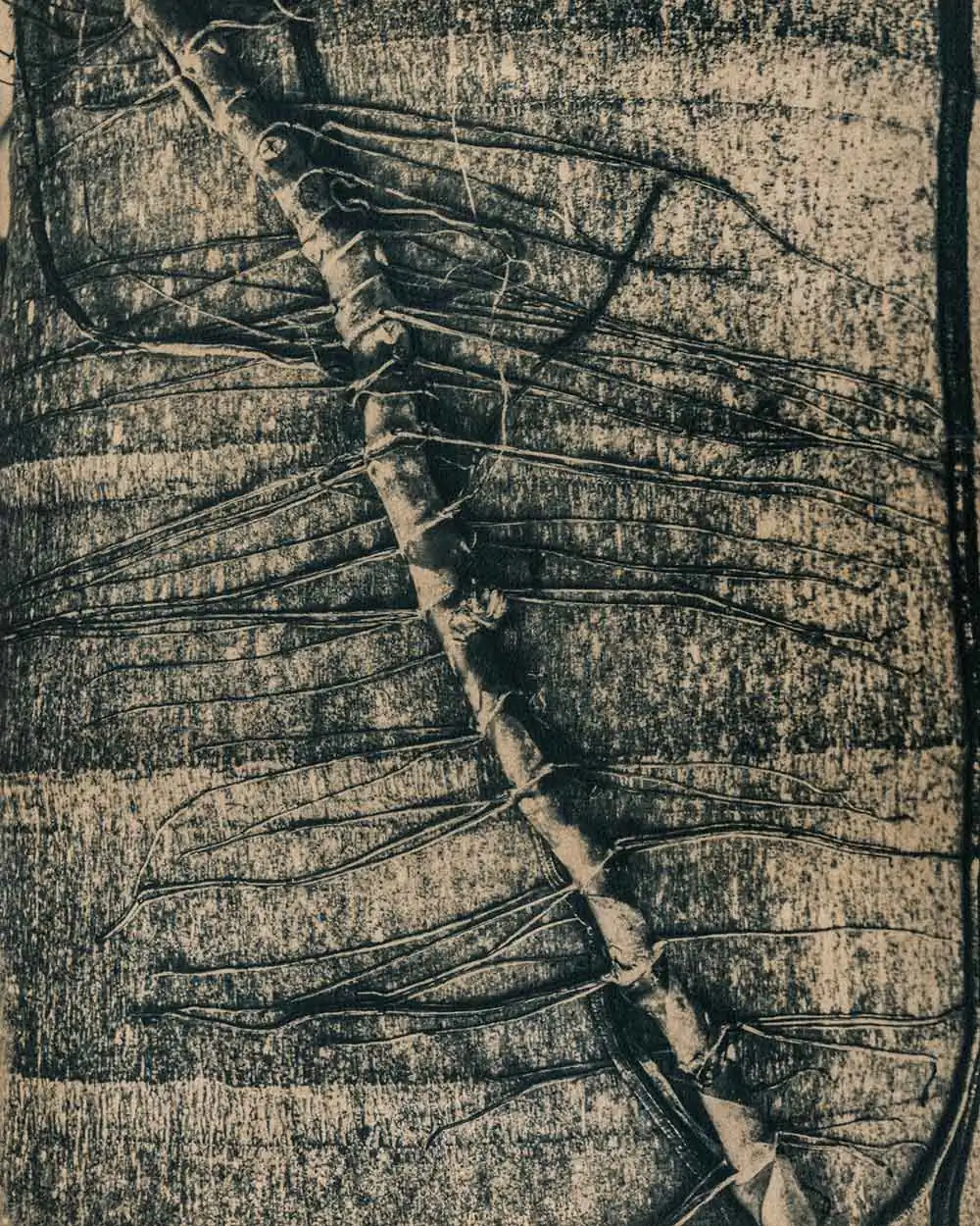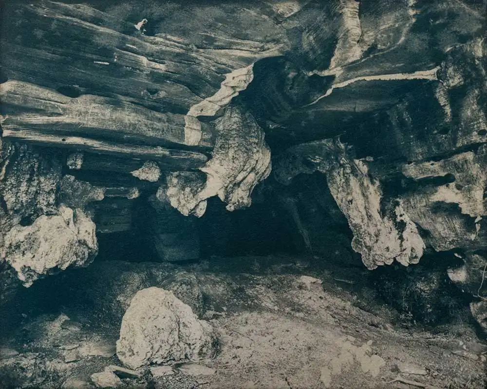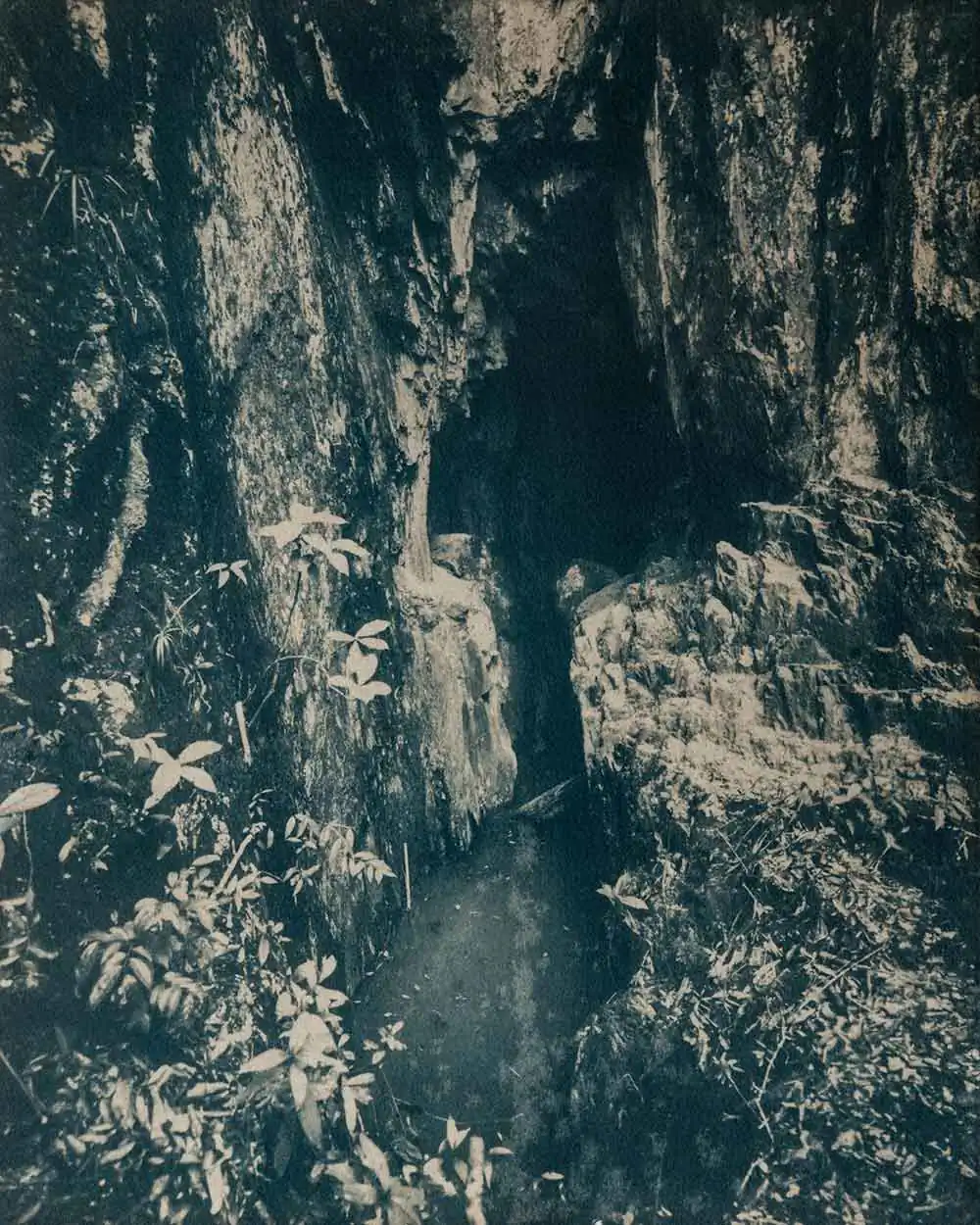 This project consists of coffee-stained cyanotypes, created using one of the first photographic processes developed in the mid-19th century. The principal active ingredient is iron salts, evoking the area known as the “Iron Triangle” where this imagery was captured. The state contains the world’s richest veins of iron ore, and mining comprises much of its economic activity today. Slavery was essential to the gold mining cycle that began in the 17th century and preceded the current iron industry. While Brazil abolished slavery in 1888—the last country in the Americas to do so—its systems and structures persist to this day.