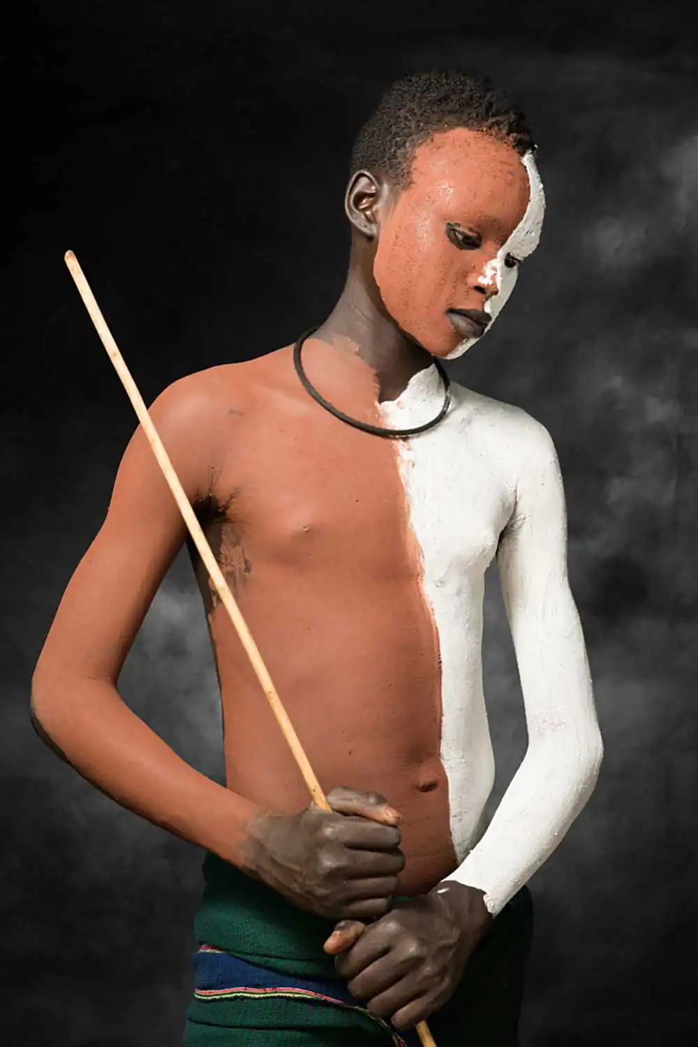 The Surma tribe use their bodies as a canvas, adorning themselves with pigment gleaned from powdered volcanic rock and natural materials such as flowers, leaves and grasses – as well as animal horns and shells – to create an aesthetic which is at once distinctive and endlessly inventive.