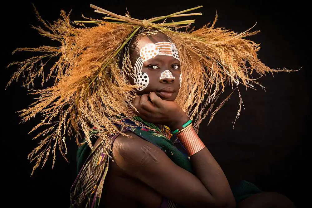 People photographed belong to Surma tribe that resides on the border between Ethiopia and South Sudan and one can claim that Surma are one of the most iconic tribes in Ethiopia. They remain isolated, untouched by foreigners due to the location, lack of amenities and due to tribal conflicts. What makes them so iconic it is their imagination and artistic skills when it comes to beautification, decorating and being fashionable in their own way.