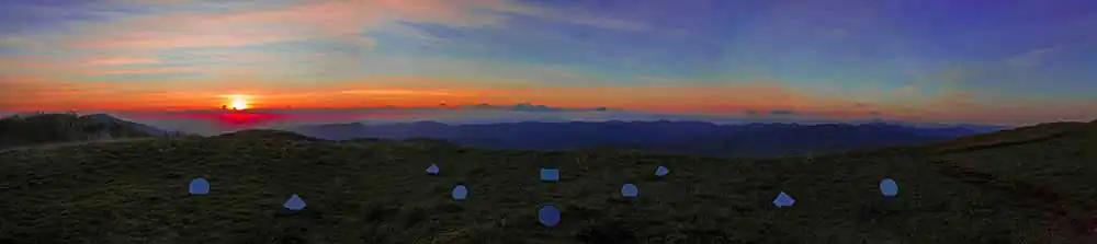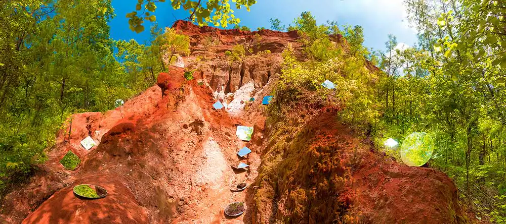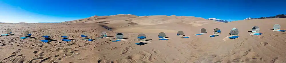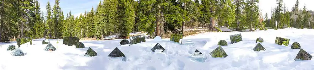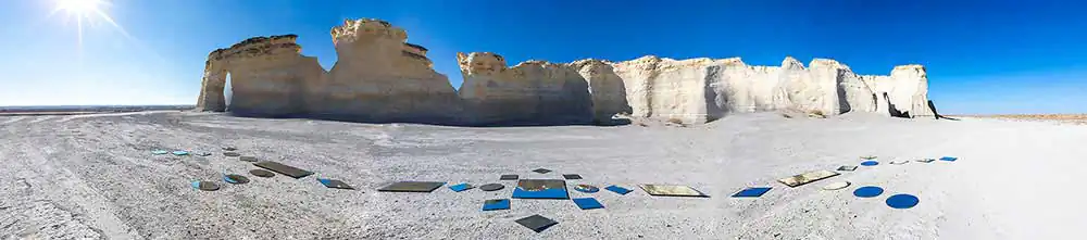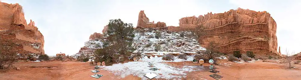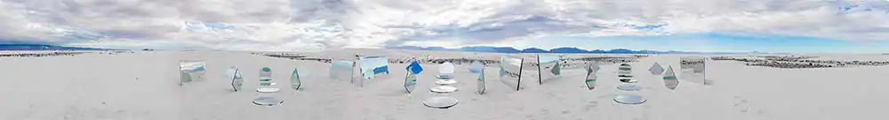 In this selection of a larger series I am working on, I have been traveling alone due to the pandemic, and creating large panoramic formats of landscapes while altering the scene in front of me with a variety of mirrors.