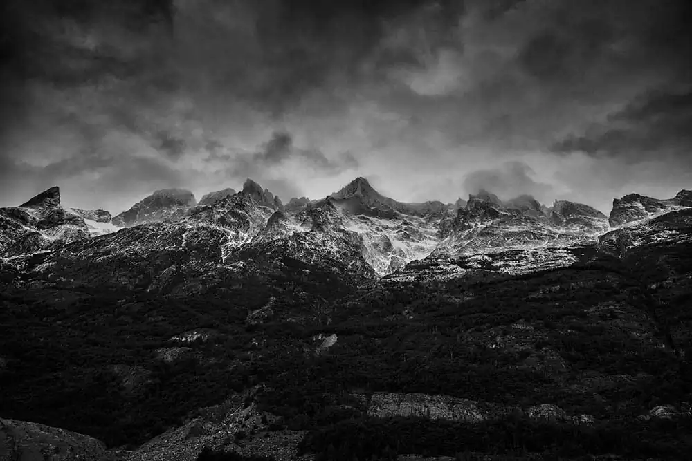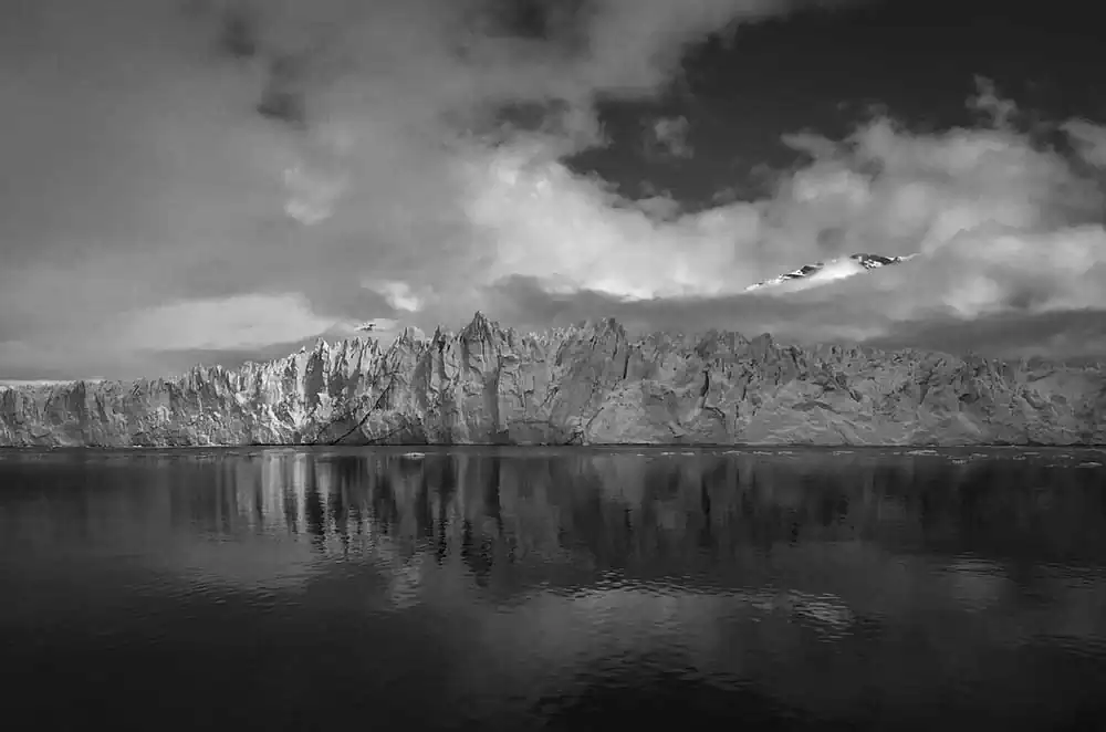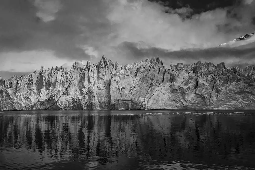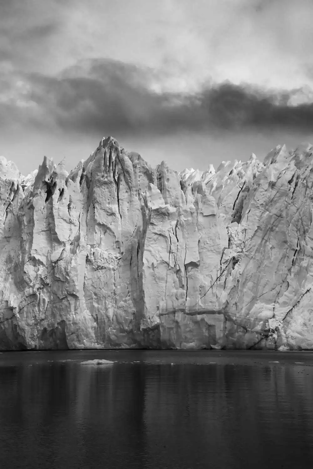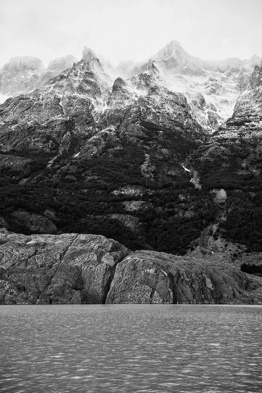 My experience with Patagonia began last November on the Argentina side of the Andes. It started in El Calafate in Los Glaciares National Park. These first images are of Perito Moreno, Upsala and Spegazzini Glaciers looming above us. The face of these glaciers soars to 300 ft above the water, and a staggering 500 ft below the surface in places. As you approach the glacier the chill of the blue ice is caught by the wind, dropping the temperature and making your eyes water. These glaciers are tremendous in size and scale, you can feel their age, although most of them are emblems of climate change, receding at a tremendous rate. I then traveled south 200 miles and crossed over the border to Chile and Torres del Paine in the heart of the Patagonia National Park of Chile. It is an unspoiled land, with sparse signs of man, few roads and fewer places of lodging. The Hotel Las Torres is an anchor on the famous “W” trekking trail of Patagonia. At the base of the Paine Masif, the famous Torres del Paine limestone towers rise up into the nearly ever-present clouds. The weather is as unpredictable as anywhere on the globe but the vistas were always breathtaking. The park feels untouched, a vast expanse of beauty that only attracts 115,000 visitors a year in its almost 1000 square miles. The majesty of this unspoiled land is unsurpassed and left me spell-bound at the beauty we were privileged to admire and absorb.Black & White seemed the only way to convey the untouched beauty of this magnificent land.
