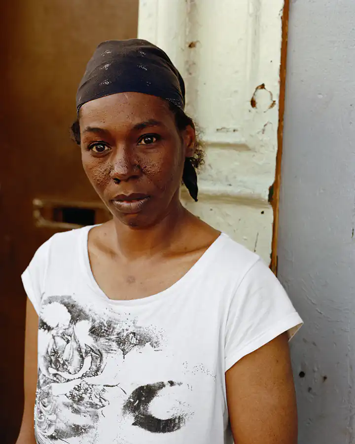 Founded in 1791 by Alexander Hamilton and others and envisioned as the nation’s first planned industrial city, Paterson offered jobs and opportunity to an immigrant labor force in the 19th and early 20th centuries, and it was a stop on the Underground Railroad. The city is the setting of novels by John Updike and Junot Diaz, and has inspired the poetry of William Carlos Williams and Allen Ginsberg, as well as the architectural photography of George Tice.  The third largest city in New Jersey, Paterson began to decline economically during the 1960s and 70s, and has continued to face high rates of unemployment since the recession. The portraits focus on the self-expression of working-class and economically marginalized Americans of the diverse racial and ethnic groups comprising Paterson’s population. Shot in natural light on the streets with a medium-format camera, each image explores the psychology of an individual who reveals him or herself willingly to the camera’s gaze.  The minimal backgrounds suggest the urban environments these subjects occupy; however, these straightforward, realist, and classically composed photographs concentrate on faces and the depth of human experience that is spoken through them.  These portraits contribute to a contemporary dialogue about the current economic reality and the experiences of Americans who exist on our ever-widening margins.