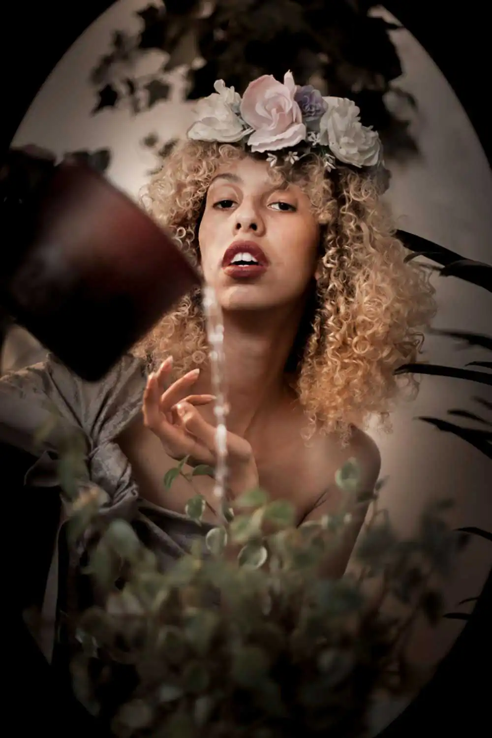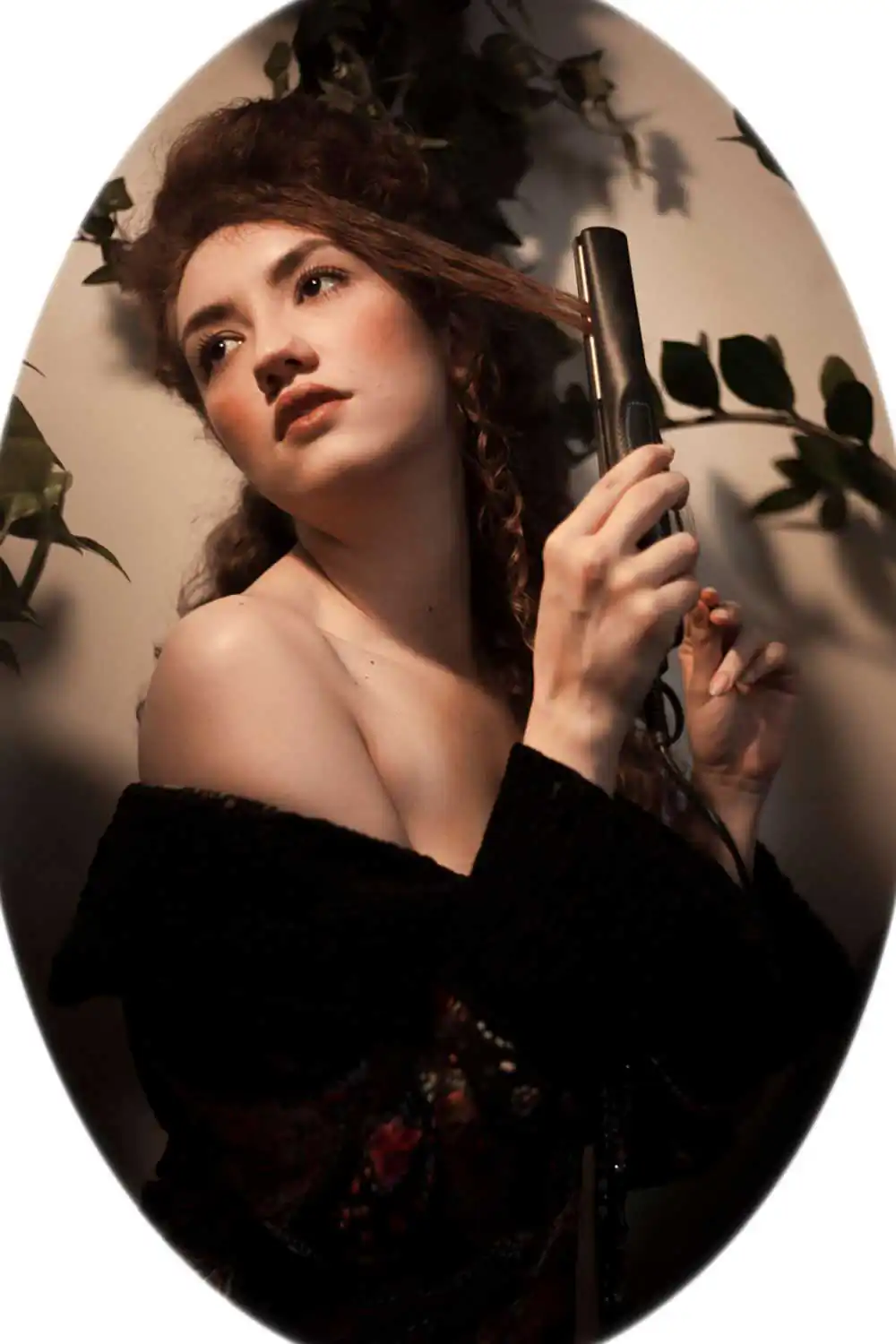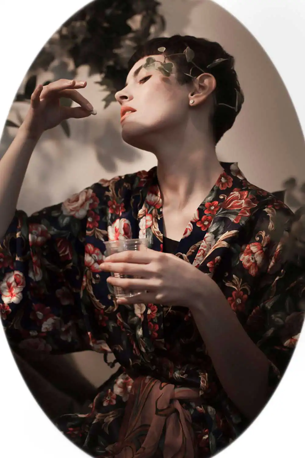 The main inspiration of Art Nouveau artists was nature, the asymmetrical lines of plants, flowers, and animals. Many curved, rounded, and arabesque lines were also used. For this reason, it can be noticed in the project, the use of natural diffused light and elements of nature in the scenery, in addition to the oval frame that surrounds each photography.