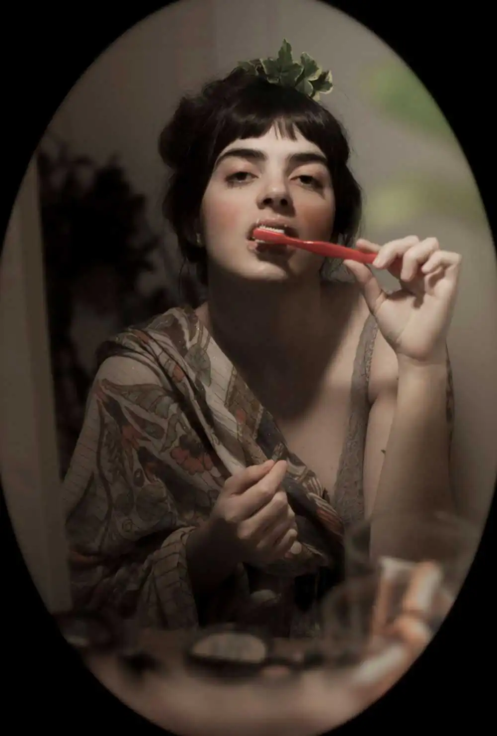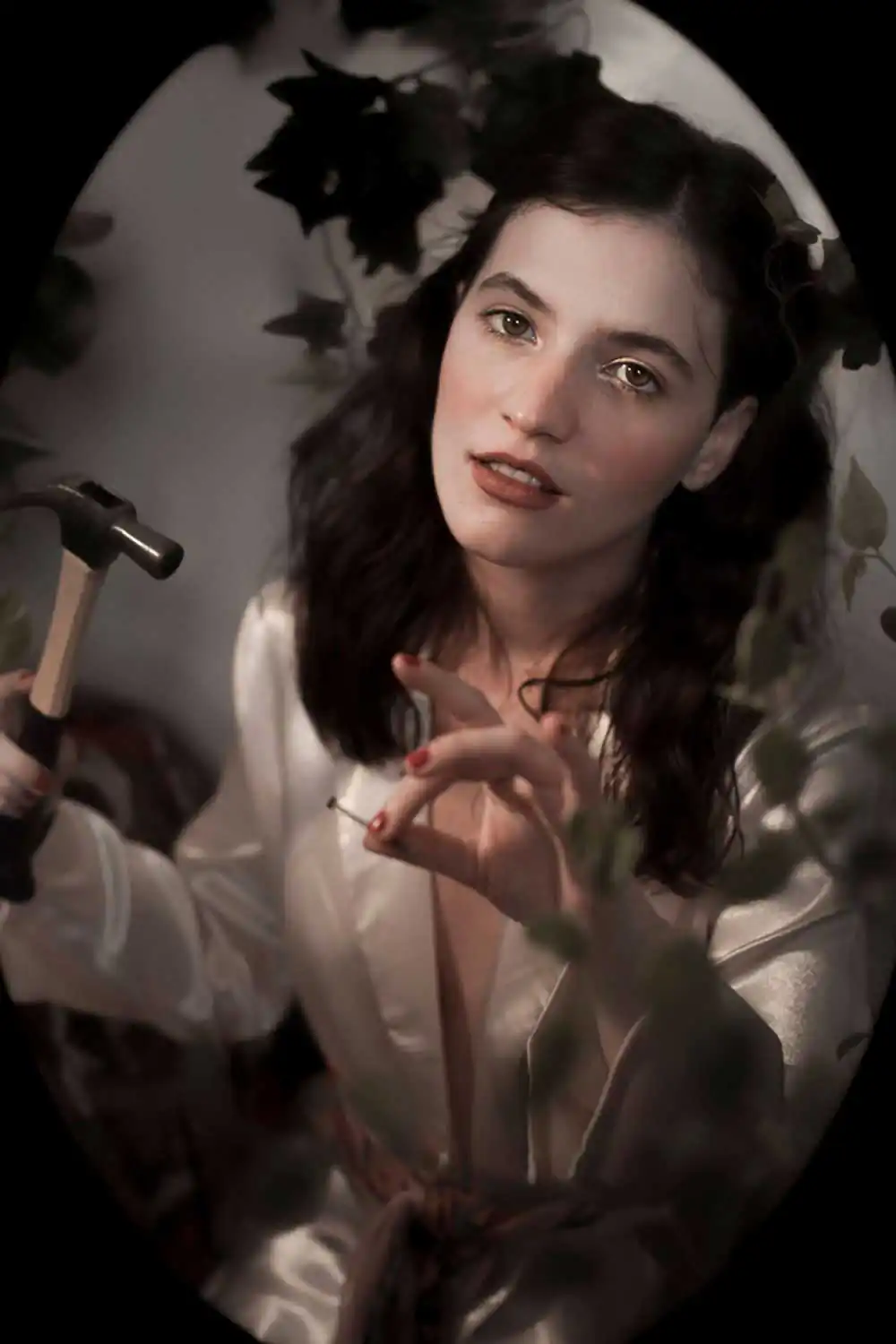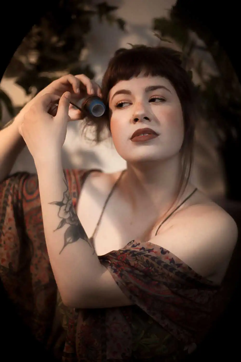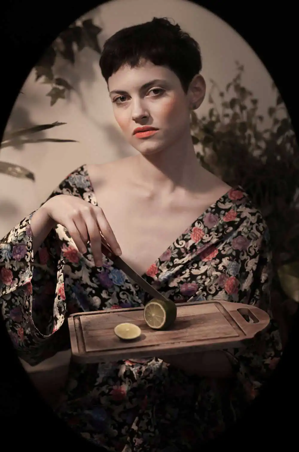 The main inspiration of Art Nouveau artists was nature, the asymmetrical lines of plants, flowers, and animals. Many curved, rounded, and arabesque lines were also used. For this reason, it can be noticed in the project, the use of natural diffused light and elements of nature in the scenery, in addition to the oval frame that surrounds each photography.