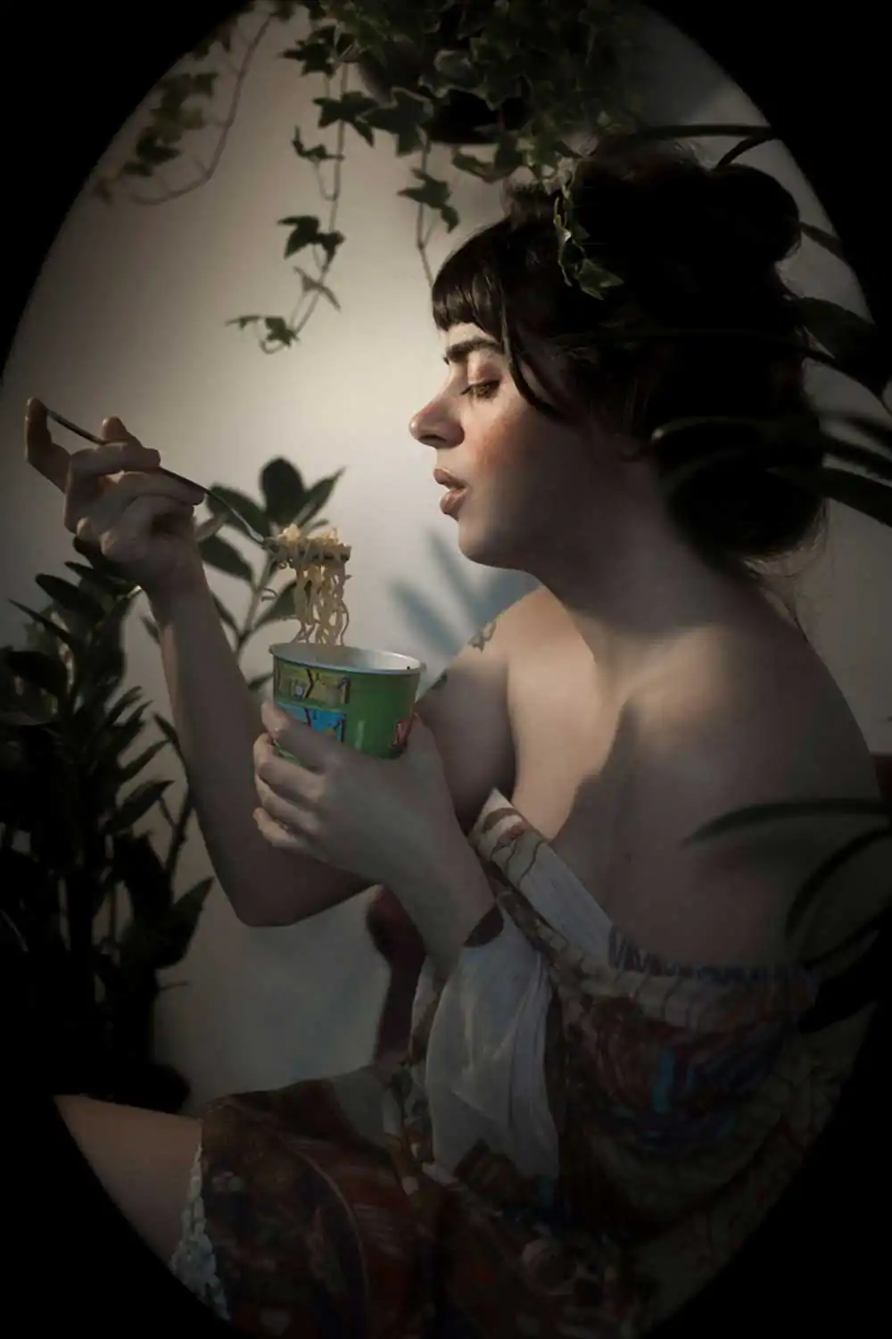 The type of light chosen, the colors, poses and the scenery allude to the old paintings, while the actions and objects to the current daily life. It is also questioned in the project the use of the standard and idealized female figure, constantly objectified in advertising posters from ancient times to the present days. “Nouveau” inserts beauties and actions that are considered not so glamorous, but rather more ordinary and realistic in its images.