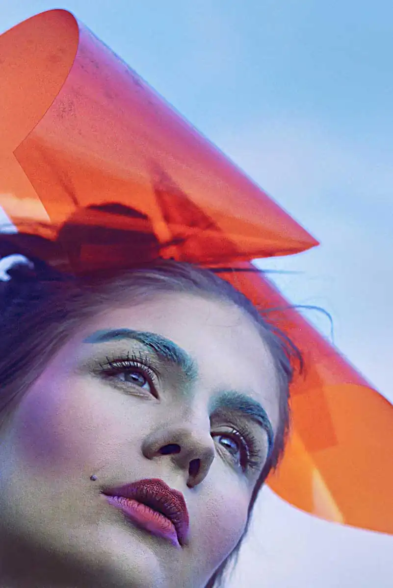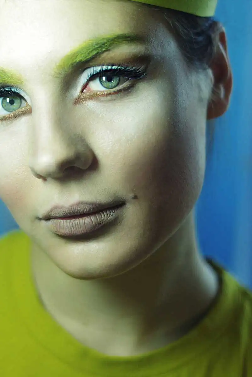 Main assumptions were to use the knowledge of complementary colours and play with it. I wanted to use specified group of colours in different parts of the series. The series consists of several different colouristic parts, with a little bit different styling and different model role in each part, completing the mood.