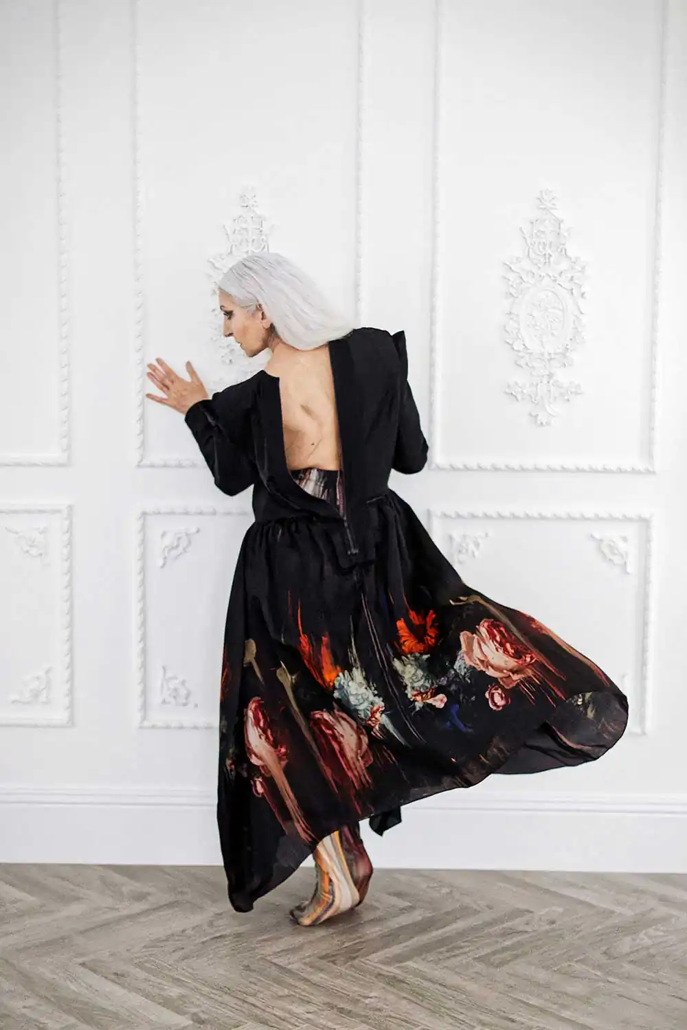 Photo Shoot : Performed by the model and performance artist Alex Bruni, “The Cage” is allegory of the ageing and social stereotypes attributed to it. The performance rebels against age biases, replacing them with passion, strength and beauty. Alex starts dancing with a heavy burden of clothes that limits her body and imprisons her mind. As she persists, the layers fall apart, until she is free.