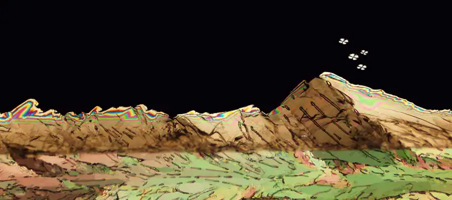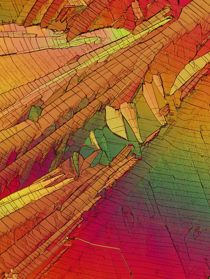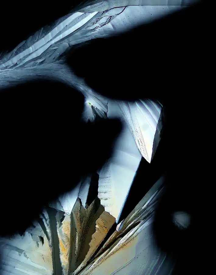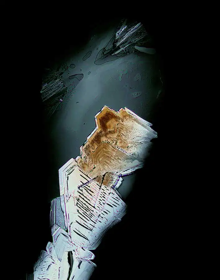 As I became more aware of other ‘photogenic’ objects when I looked down into the microscopic world I graduated towards these ‘other objects’. It wasn’t a conscious effort on my part; it just evolved until I realised that I could use microscopes to my artistic advantage. My first solo exhibition in 2008 was a result of my photomicrographic efforts and illustrated what appeared to be views of outer space. It was titled “Luminous Spacescapes.” The resulting images were derived from crystals of a common household product. I work to the adage that if I like something I photograph it. When I work with a new microscopic object I do not normally start out with a theme in mind but sometimes a theme starts to unfold and I make this a priority until I have exhausted all possibilities. I then move on to look for other ideas. In many cases selecting different microscope specimens enables me to find a myriad of options.