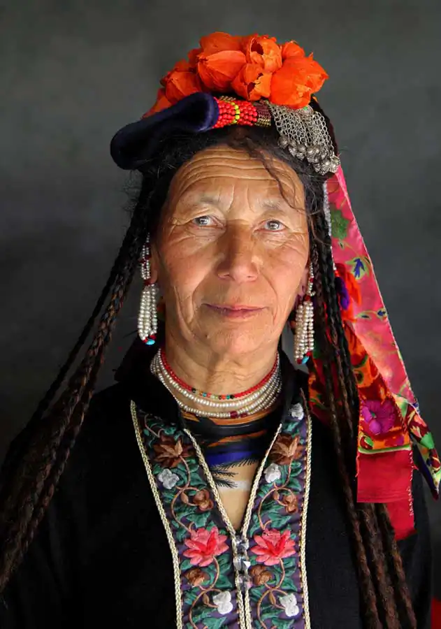 At the confluence of the rivers Shayok and Indus in the Kargil region, 163 kms west of Leh (India), we can find the community of Drokpas, who live in a cluster of villages including the small village Dhahanu, which can be reached passing through the beautiful villages of Kaltsey, Domkhar Skurbuchan and Achinathang. Drokpas are rumoured to be the ‘last pure specimens’ of the Aryan race. Across the world, several people still regard Aryans as the ‘Master Race’ or the noble race – tall, blue-eyed blondes endowed with intelligence and values. They are very protective about themselves and are, understandably, reluctant to open up so easily to “outsiders”. The joint family system is still in vogue, the sex-ratio is well-balanced. Inter caste marriages are rare.