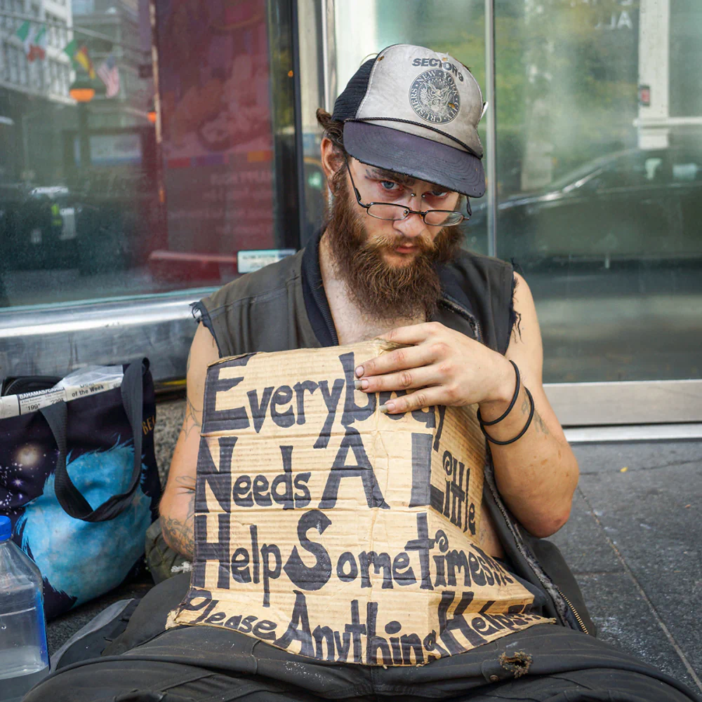 “PRAY HERE, Portrait of a Religious Zealot.” While driving on a busy street in Dayton, Ohio, I spotted a man who was giving away Bibles. I pulled over and asked if I could photograph him. He said yes, as long as I didn’t make fun of him on social media. While I was taking pictures, several people stopped to pray with him.
