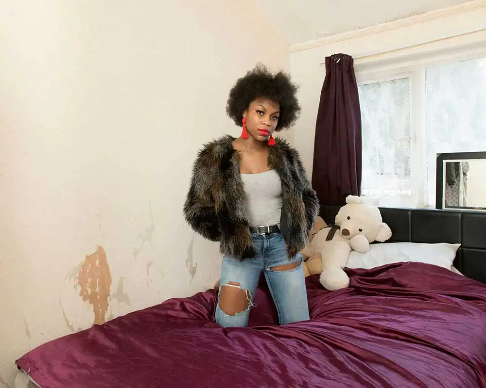Michelle Sank was born in South Africa and settled in the UK in 1987. She cites this background as informing her interest in sub-cultures and the exploration of contemporary social issues and challenges. Her crafted portraits meld place and person creating sociological, visual and psychological landscapes and narratives.
