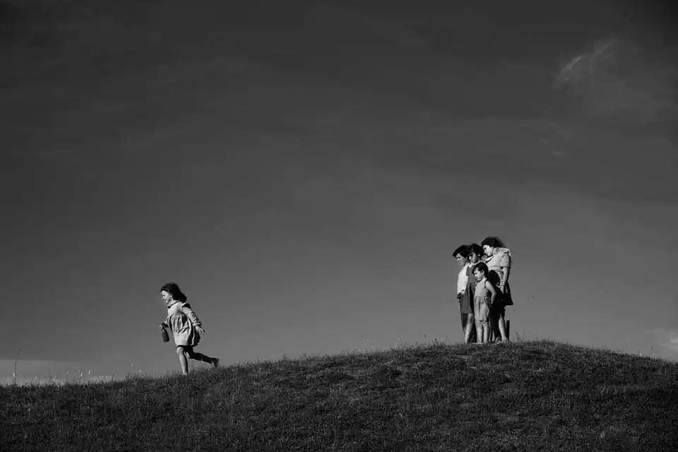 I make these pictures to reconnect with who I was. With a slower pace. With the colors of yesterday. With my childhood and with those games. The texture of the fabrics from those days against my body. The conquered open air. The days of dirty and adventurous knees. My camera is my time machine. In the pictures I look for my mom. Younger than today. Smaller, with flowing hair. Disheveled and laughing. Carefree. She’s not alone, everybody’s there, who we were and who departed. The friends from school. The animals and their nicknames, their feathers and their hooves. The house that looked much bigger, unconquerable.