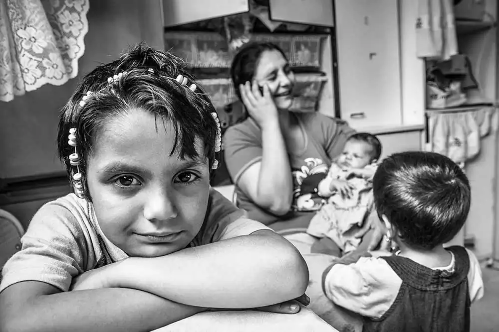 The city authorities condemned the neighborhood where these Roma had lived for the past 70 years as unsafe ad razed their houses to the groud, without any consideration for the strong attachment these people had for their home, their memories and their lifestyle. These series of photographs pays a tribute to the digity of these people. The specific values of the community are unveiled : a respect for elders, life in the open air, and the limitless love with which parents lavish their children. In the backgroud of these portraits, one can also glimpse social and economic issues that this commuity must contend with : outright discrimiation, the precarious social position of women and difficulties relating to housing. Living in a conventional house, paying rent and no longer being able to travel will be a new way of life which those Romani families lucky enough to be rehoused must accustomed to. [Official Website]