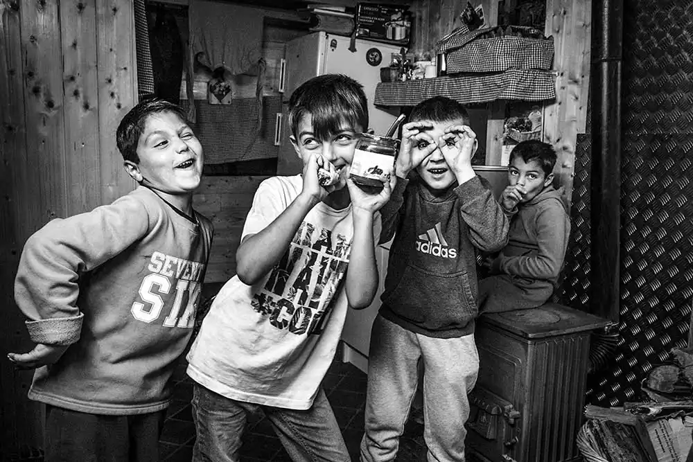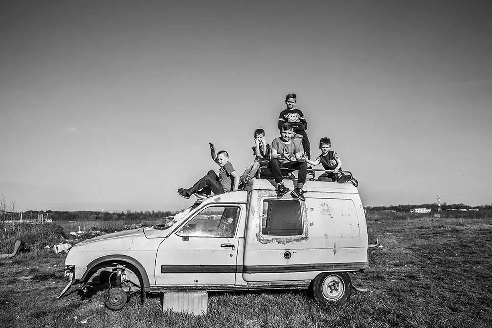 No Happiness Without Children, Nane Chave, Nane Bacht. These pictures were mostly taken in 2017 and 2018 in a Romani neighborhood known as « Polygon » in Strasbourg, France, where 170 families lived, six months before they were evicted and their homes destroyed.