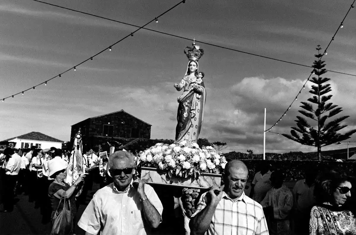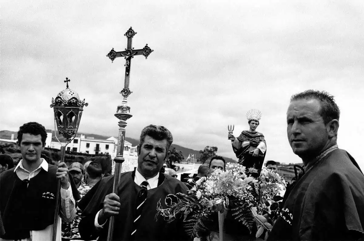 I have met many Azoreans who spend large periods of their time and large amounts of money to keep the culture of these people alive. But, unfortunately, there are obvious signs of tiredness. The younger ones, seduced by the wonders that technology offers, adhere less and less to these cultural manifestations. As Igor França wrote in the catalog of my last exhibition, this series “… documents aspects of religiosity and work on land and sea that constitute identity references of daily life in these islands. The Azores, inhabited for more than five centuries, were understood by our ancestors as an area of freedom at the fringes of religious orthodoxy where cults flourished, such as that of the Holy Spirit, and a profound religiosity was erected on the lava of volcanoes and dread of earthquakes. It is from this faith and from the need imposed by the survival – which forced the transformation of the landscape – that this [series] tells us. These images reveal us rituals threatened both by globalization and by the folklore that the tourist flows feed, and perpetuate in beautiful tones of black and white an endangered world.” [Official Website]