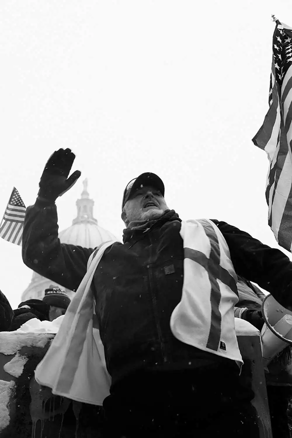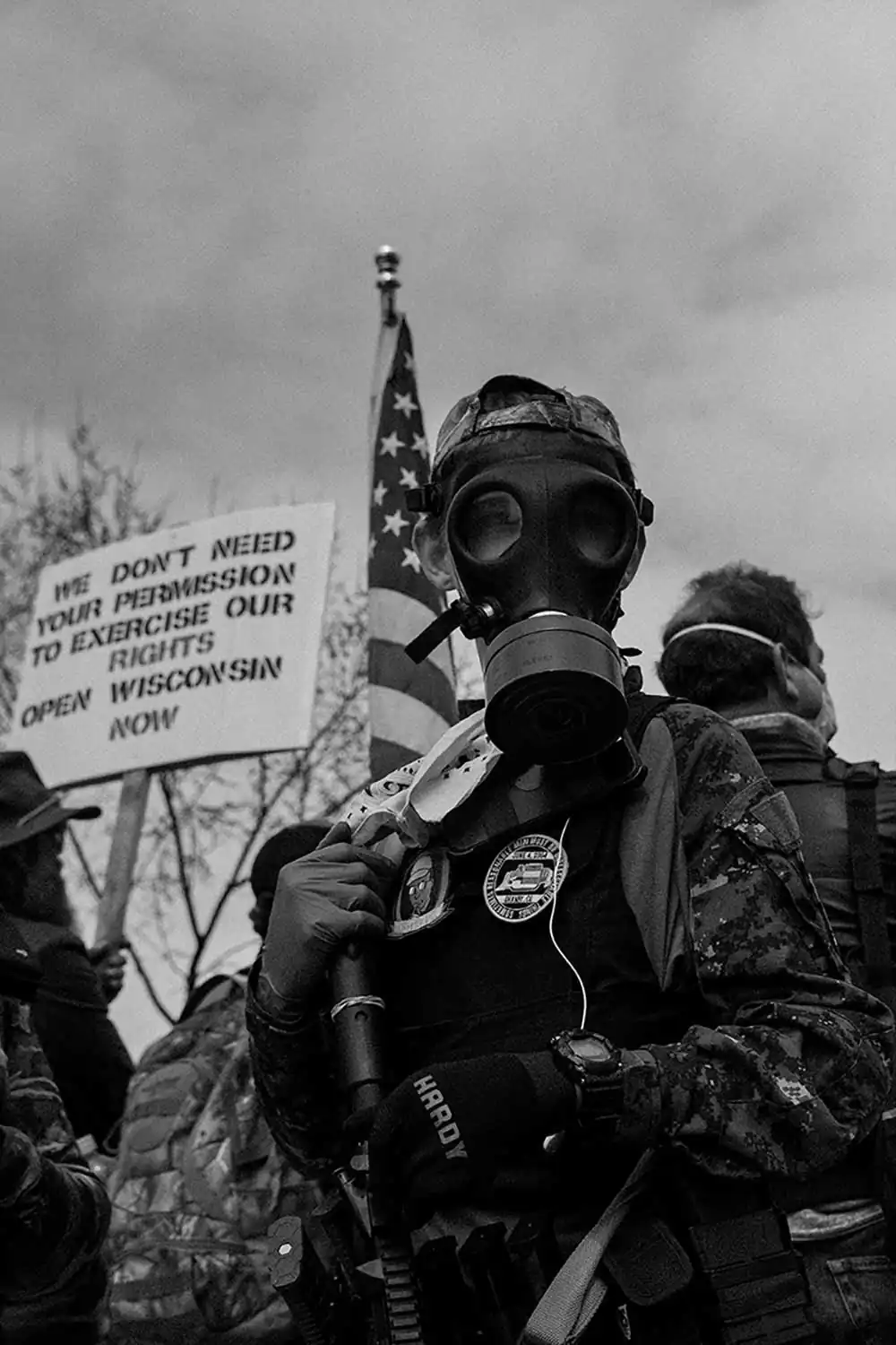 Over the course of the year, my goal was to depict the opposing sides of the protests. Though as a black man I empathize more with those participating in the movement for Black Lives, I feel it is important to show what the right wing, conservative “other side” was fighting for, as they make up a significant portion of Wisconsin’s population. The ideas that each side stood for- black liberation and defunding the police versus removal of COVID-19 restrictions and perceived election fraud – are both imperative to the collective narrative of Wisconsin. The commonality between the two camps is that both realize the current system has failed to meet the needs of its constituents. The dissension occurs in the identification and rectification of such institutional failures.
