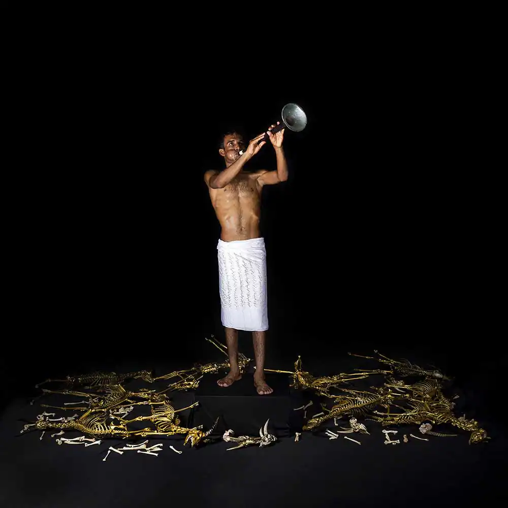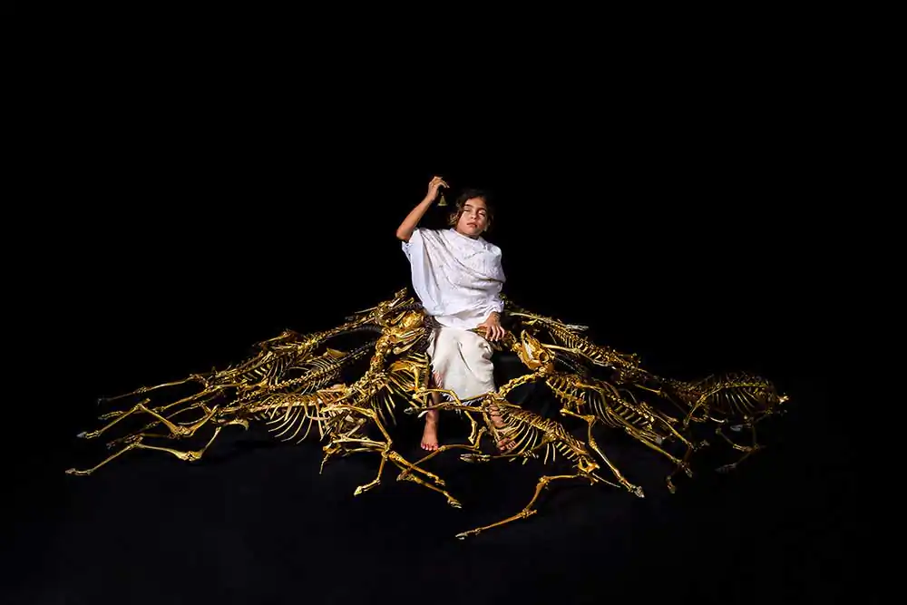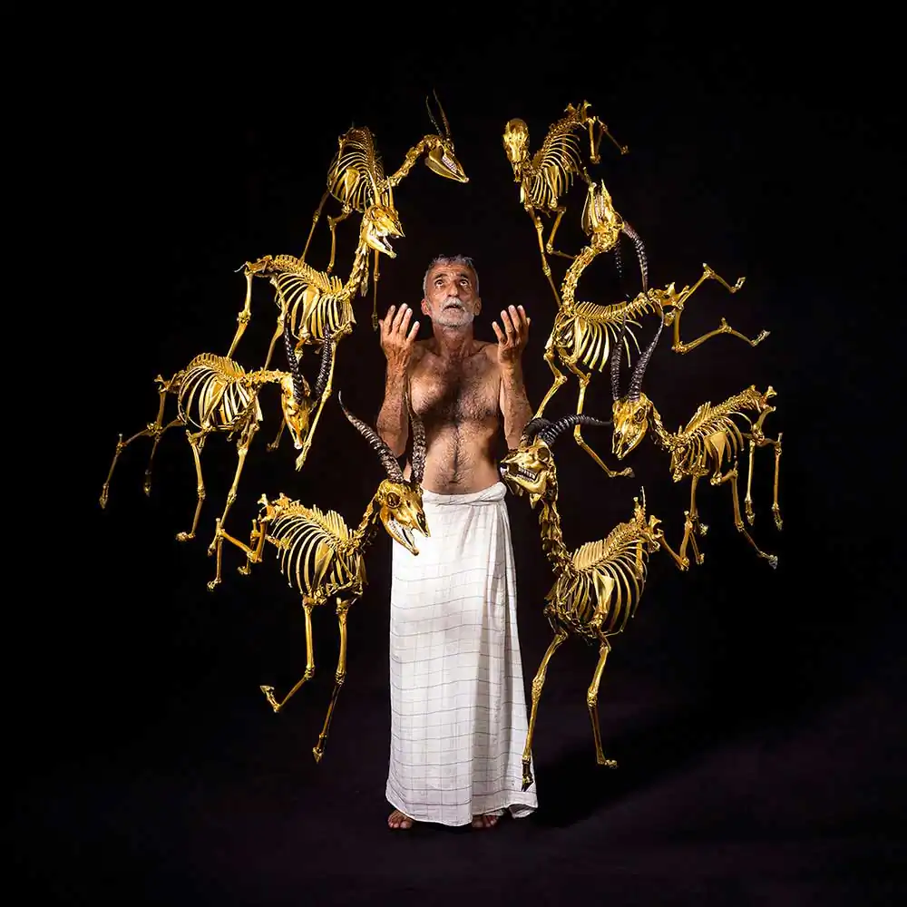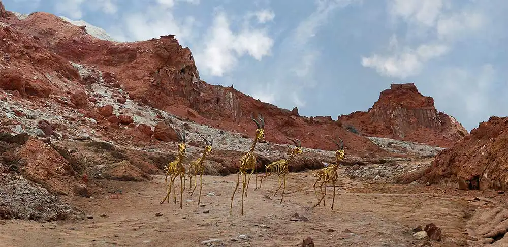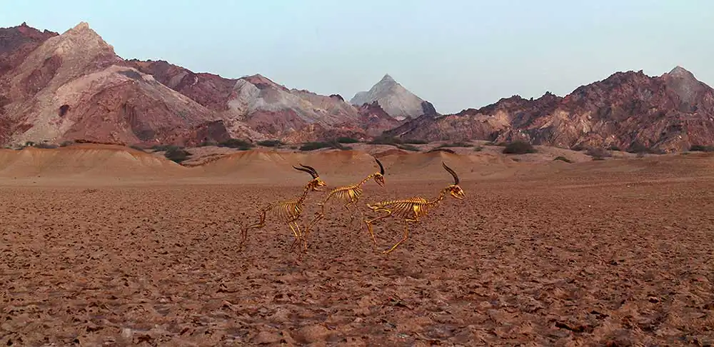 The most common cause of death was the plastic we found in their stomachs. We then separated the bones from other organs,From the thirty dead bodies, we reached a flock of ten deer ,Golden herd. Which is a sign of death beyond time and place…