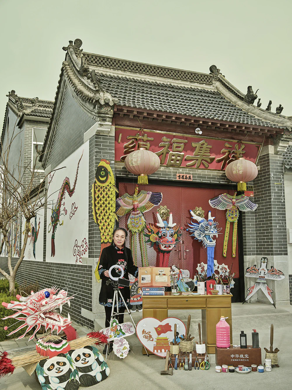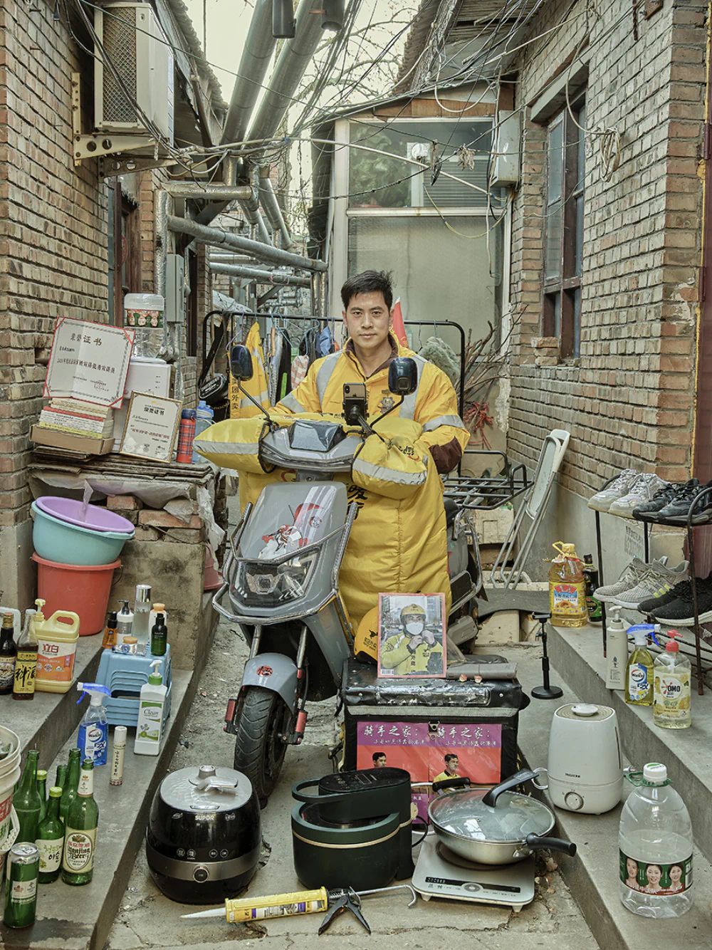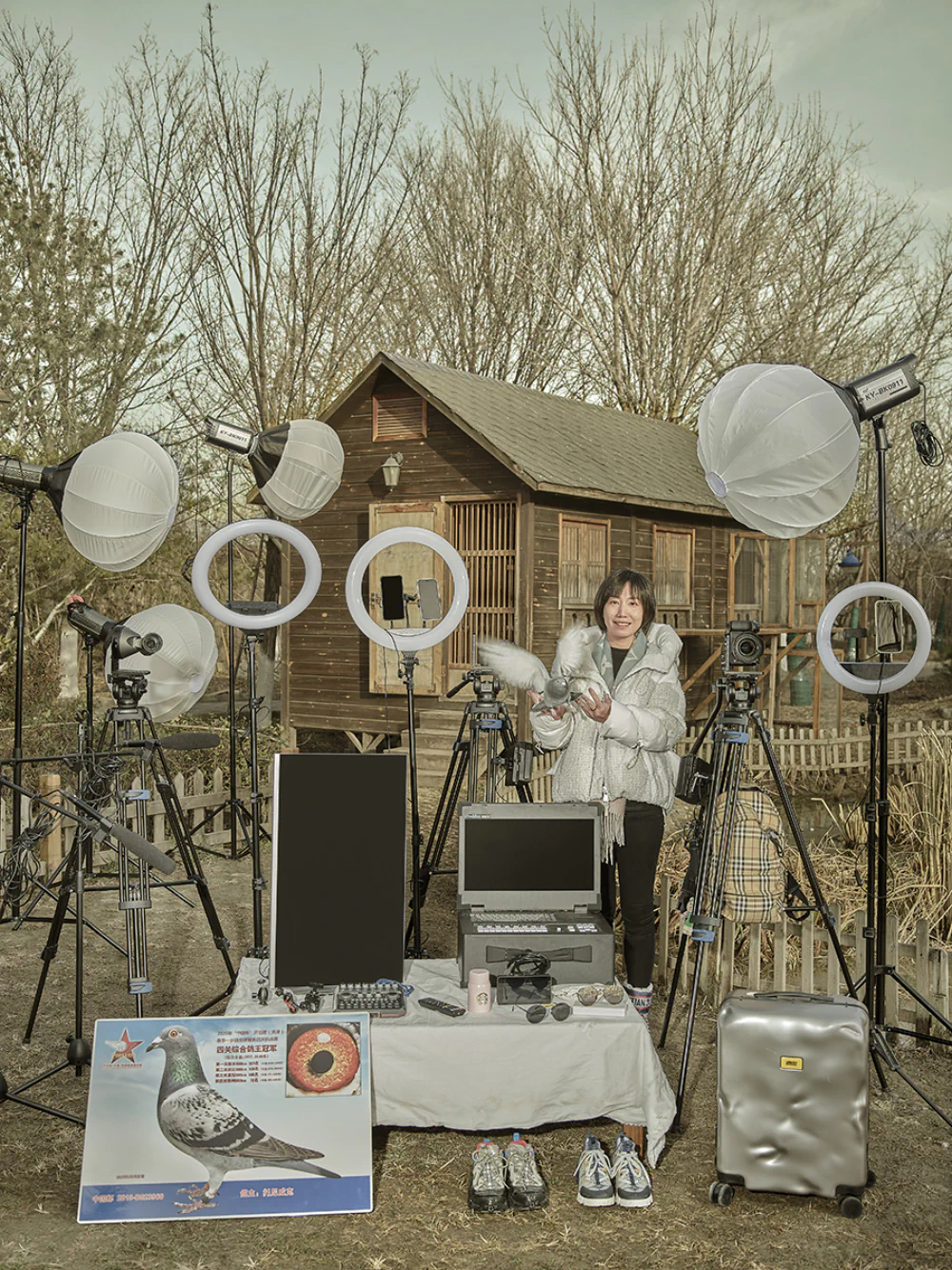 For example, one comedian performs humorous shows while living in a very rural town, yet is able to connect with the outside world through the internet. A truck driver shares his experience and expertise in driving and repairing trucks, while Dr. Dai has become highly popular by presenting chemical experiment education for children. When creating each photograph, I chose to display the objects related to their live-streaming work and selected backgrounds typical of their streaming environments, allowing viewers to better understand the stories of the subjects.