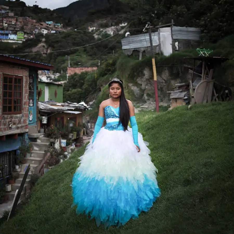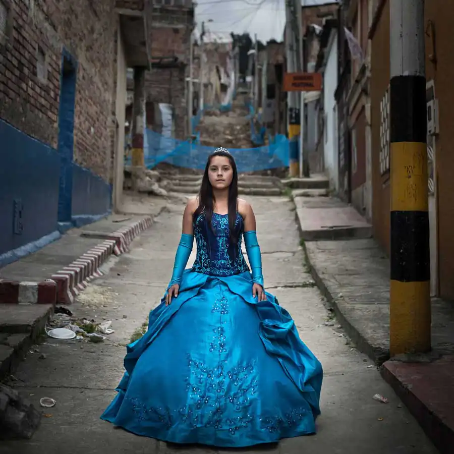 As a woman myself, I decided to go and meet these girls in order to better understand what this celebration really means for them and their family. I spent two months in Bogota and met various “Quinceañeras” in their home and took a portrait of each girl, posing in their own environment with their birthday dresses.