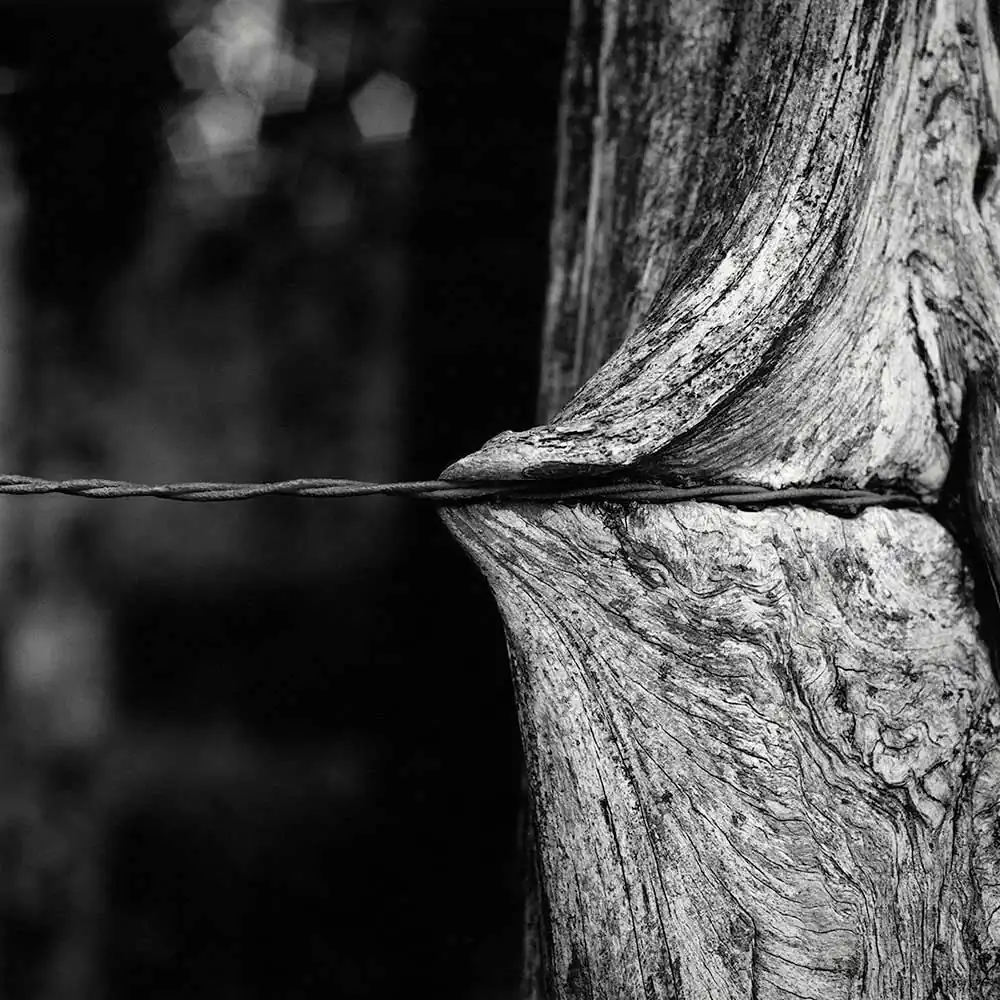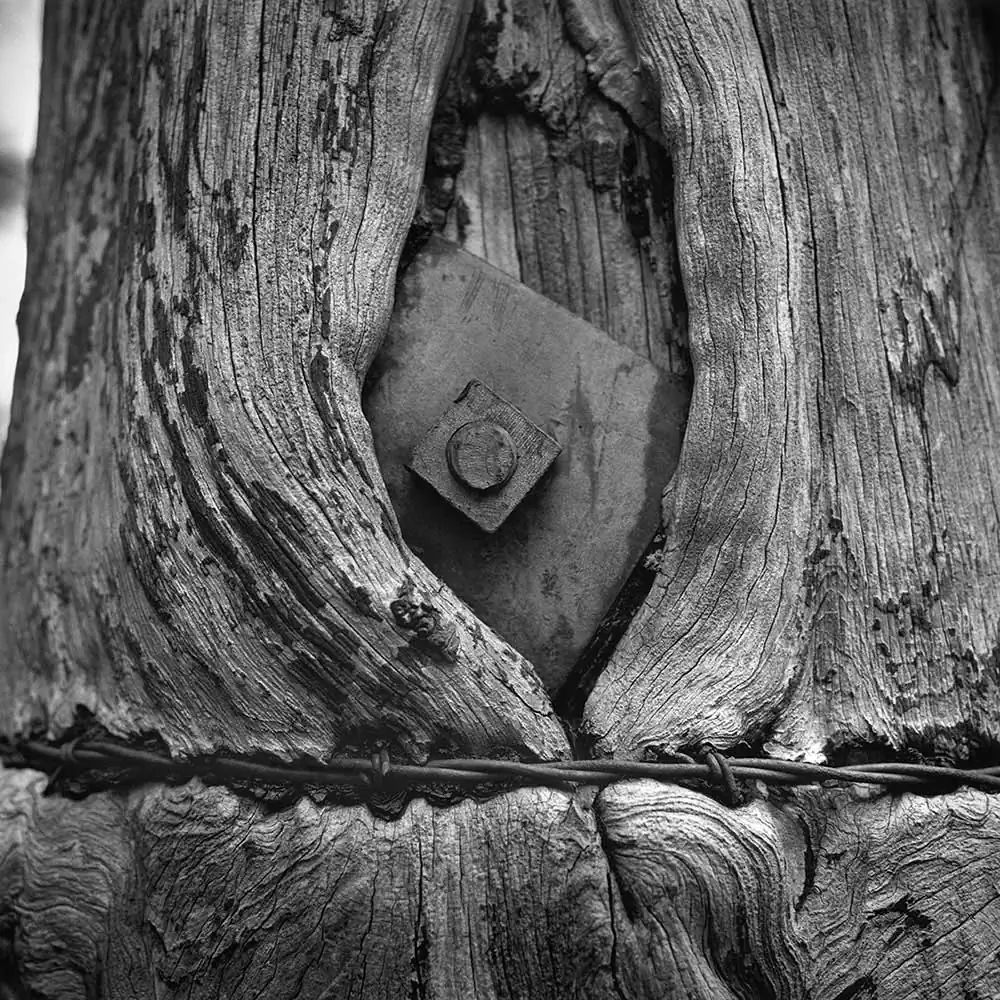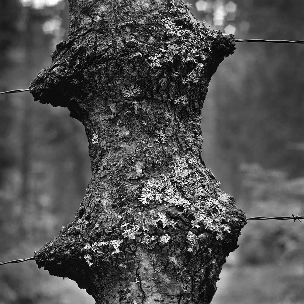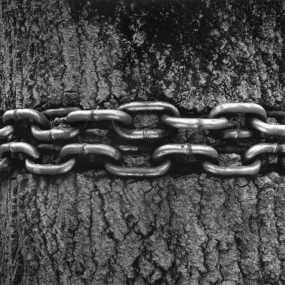 Used to restrict access to the landowner’s property, this series of photographs focuses on trees that have been used as supports for a variety of chains, cables, or sections of fencing.