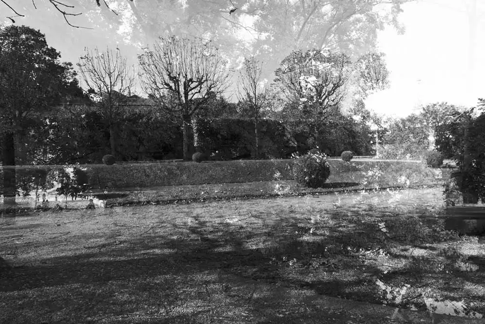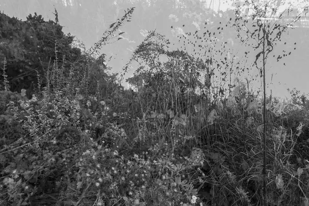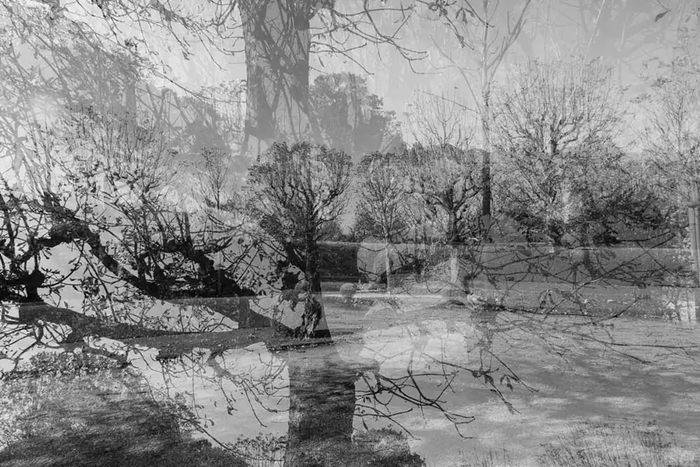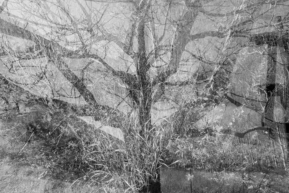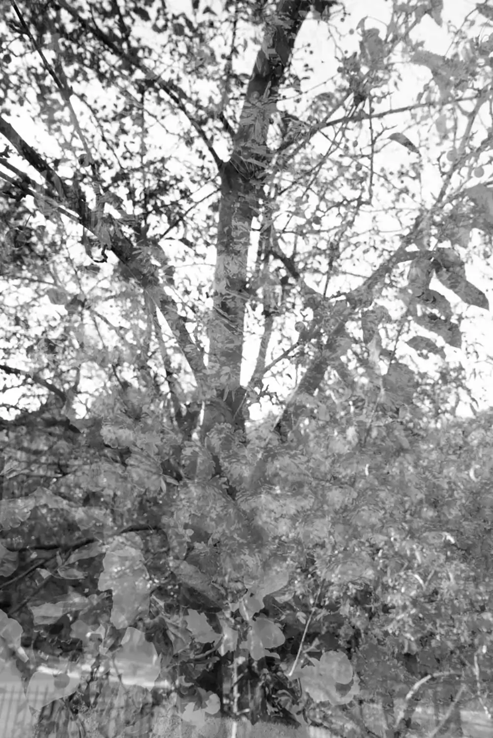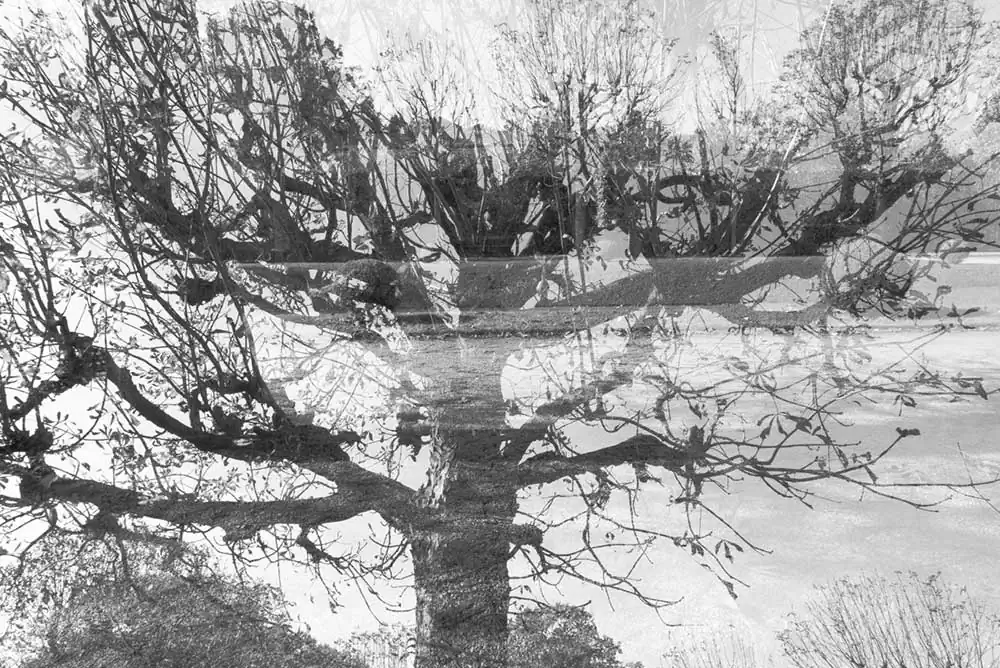 These photographs should have different meanings for different people. There is no fixed narrative, but rather a feeling, a presence. The multi exposure technique creates layered images and mirrors the fragmented nature of memory and surreal quality of the subconscious mind. Each photograph becomes a map to discover one’s dream’s essence, familiar, yet foreign. For the viewer it could be an abstract vision, an ever-changing feeling. At times the overlap and blending of branches with tree trunks, of tree trunks with leaves, of branches with water or the layers of branches with flowers create a textured tapestry that feels intricate and expansive. Each multi exposure composition conveys a new narrative, a new dreamscape. The images read as the in-between spaces for each individual. The spaces between dreaming and wakefulness, the spaces between light and dark, the spaces between knowing and the unknowns are manifest in these multi-exposure images.