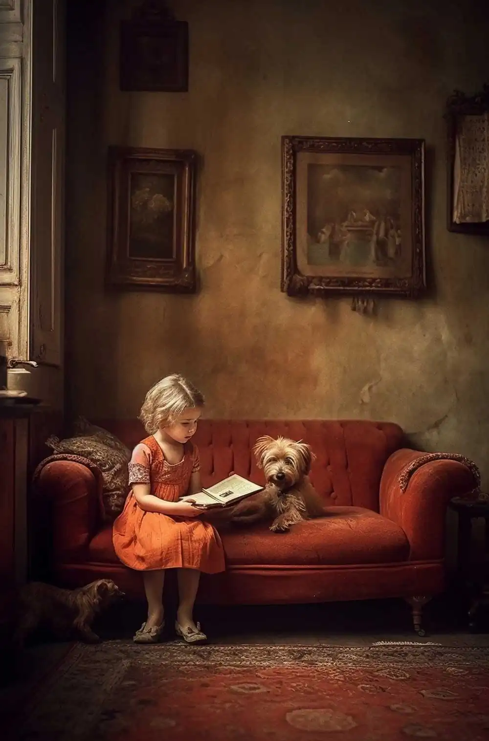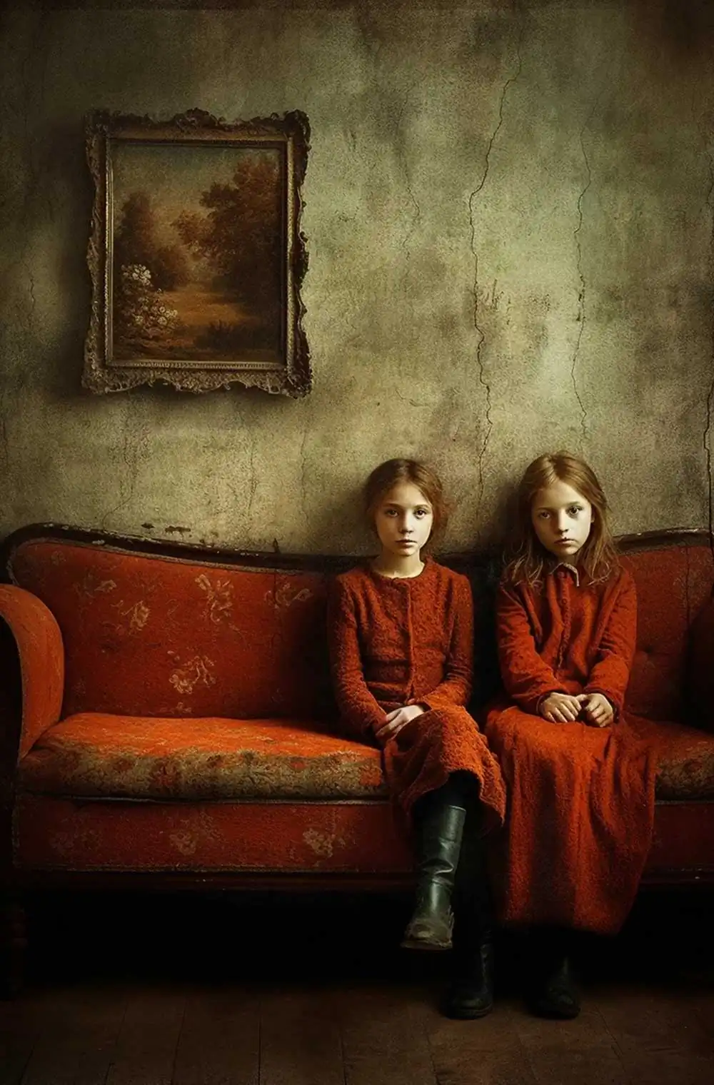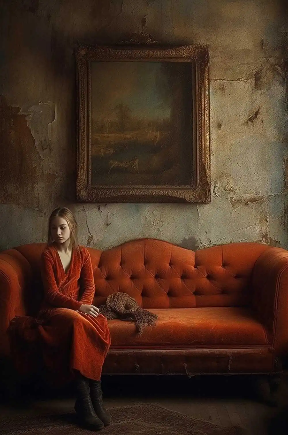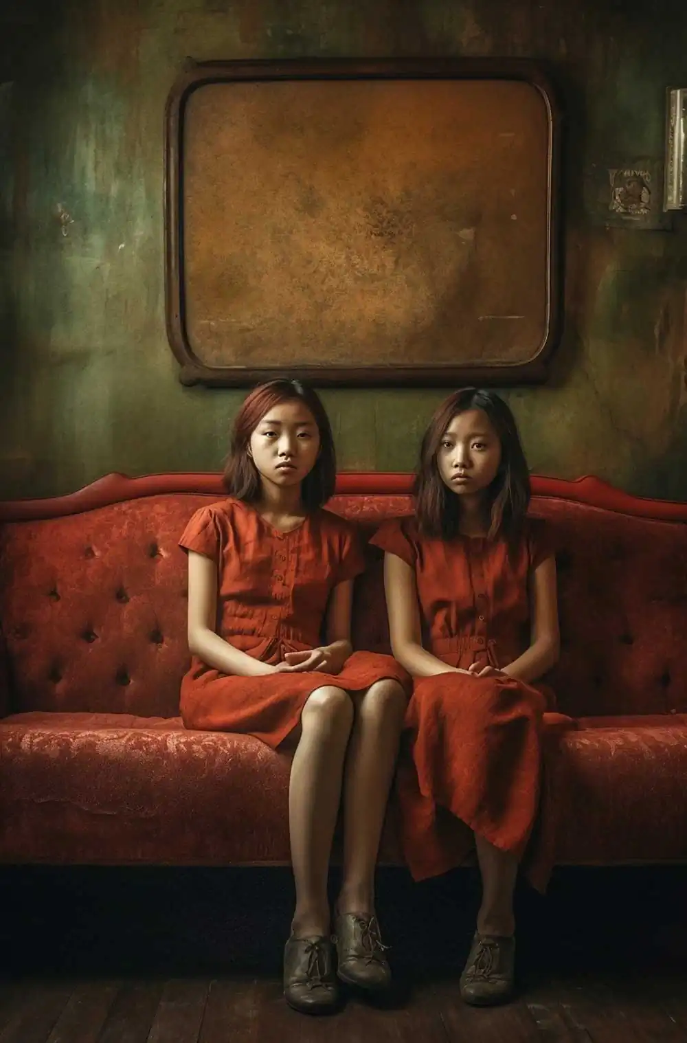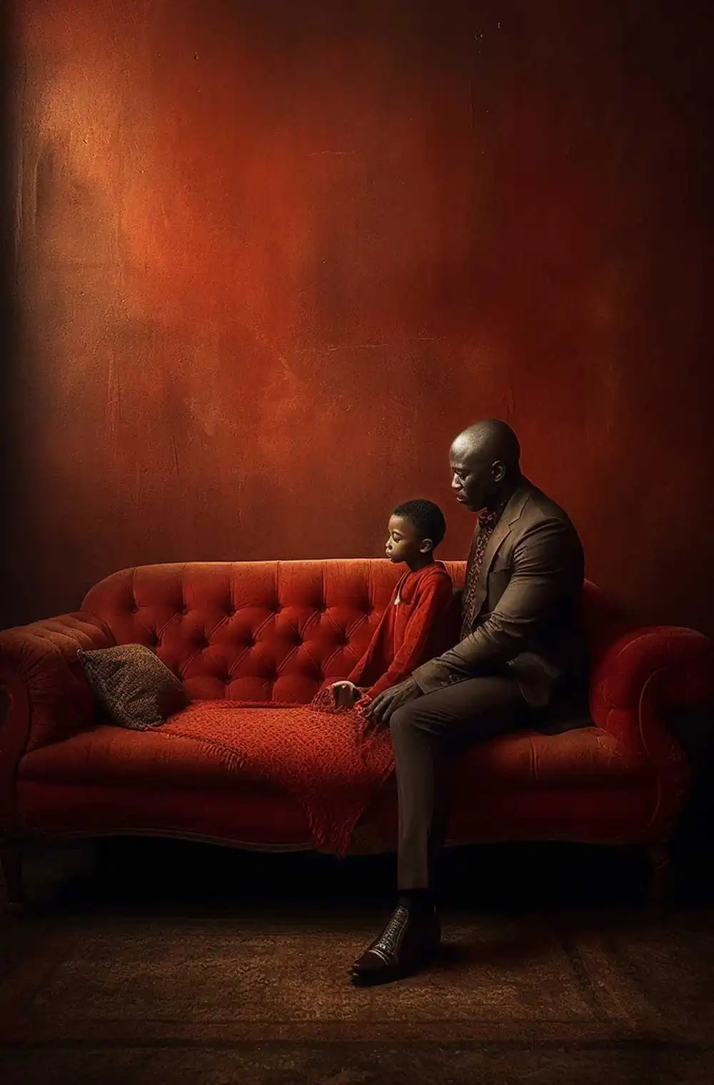 Embracing a single color palette, the red couch serves as a unifying thread throughout this series, symbolizing a shared space where diverse stories and experiences converge.