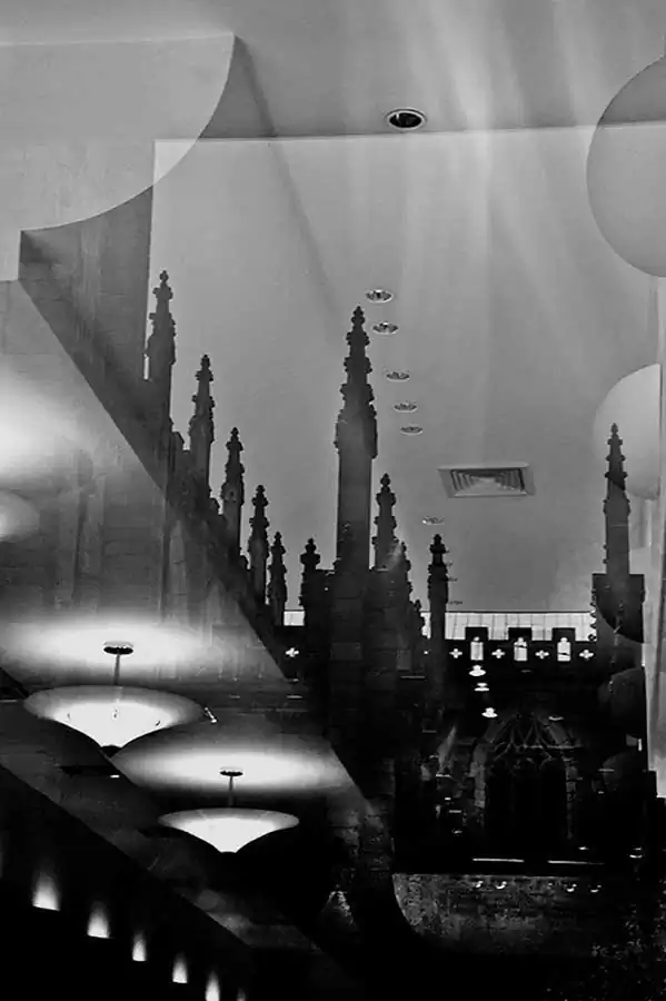 On this new plane of perception, reality re-invents itself; lines and forms of architectural structures meld and become abstract, human forms shift within inner and outer worlds in an illusory way, and a sense of mystery begins to color my visual experience.