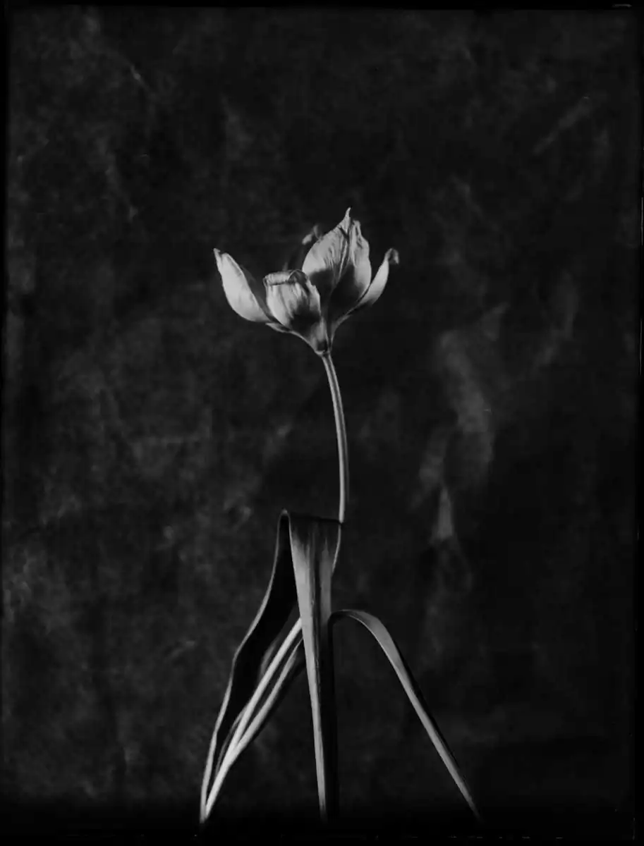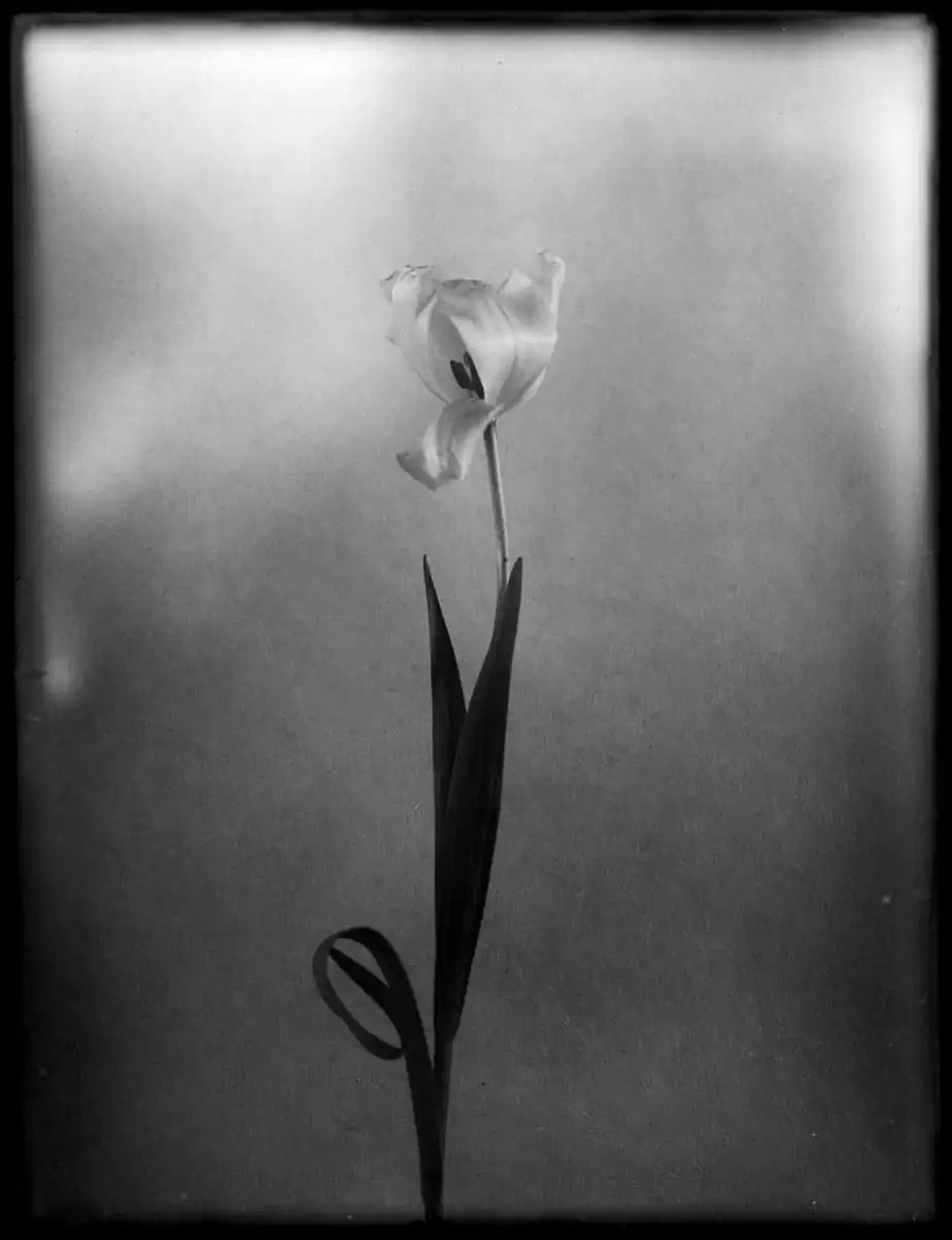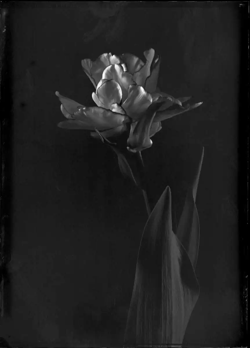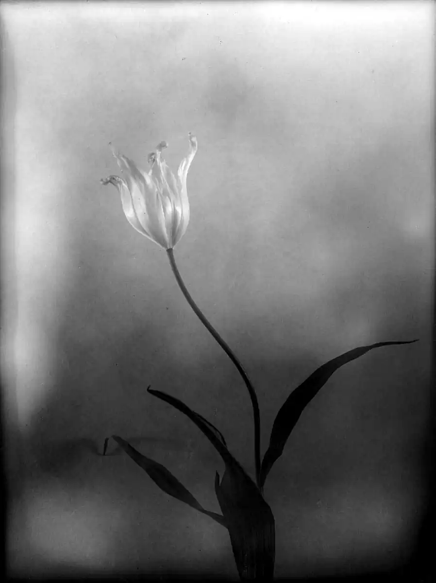 Tulips have become synonym with elegance from the time of the designs on Iznik pottery through the Still Lifes of Rachel Ruysch. Like roses they stand for vanity too; we all would want to keep their fleeting beauty. But the images that are made of them can be seen as eternal.Their hearts are made of glass, so easily broken as ours in love, so strong they can last forever, with a soul that’s made of light and shadows, like the glass plates on which I took these photographs.