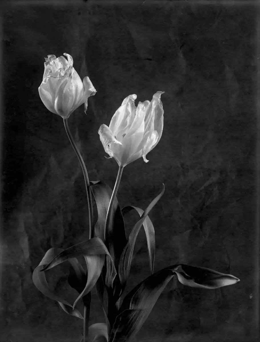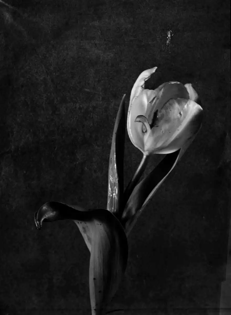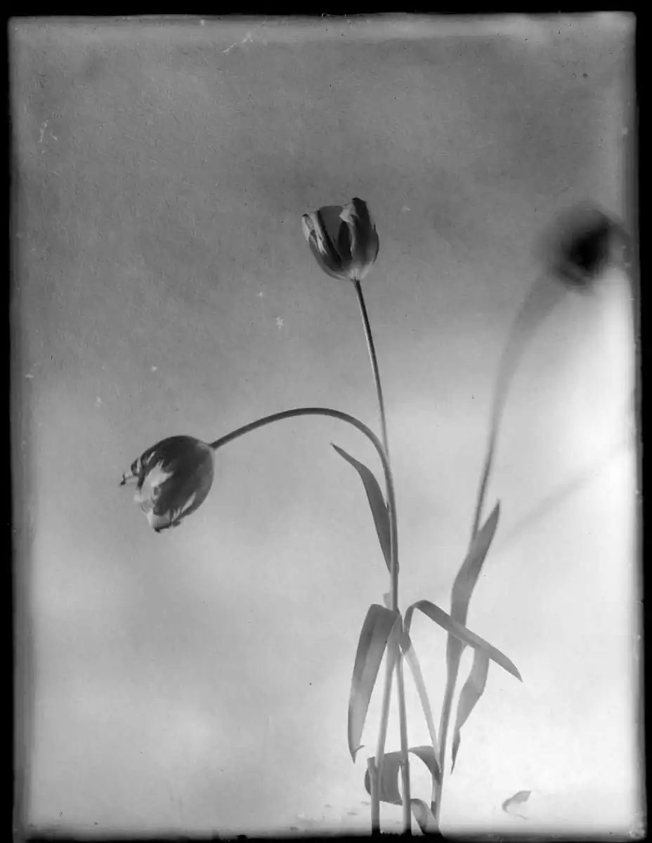 Tulips have become synonym with elegance from the time of the designs on Iznik pottery through the Still Lifes of Rachel Ruysch. Like roses they stand for vanity too; we all would want to keep their fleeting beauty. But the images that are made of them can be seen as eternal.Their hearts are made of glass, so easily broken as ours in love, so strong they can last forever, with a soul that’s made of light and shadows, like the glass plates on which I took these photographs.