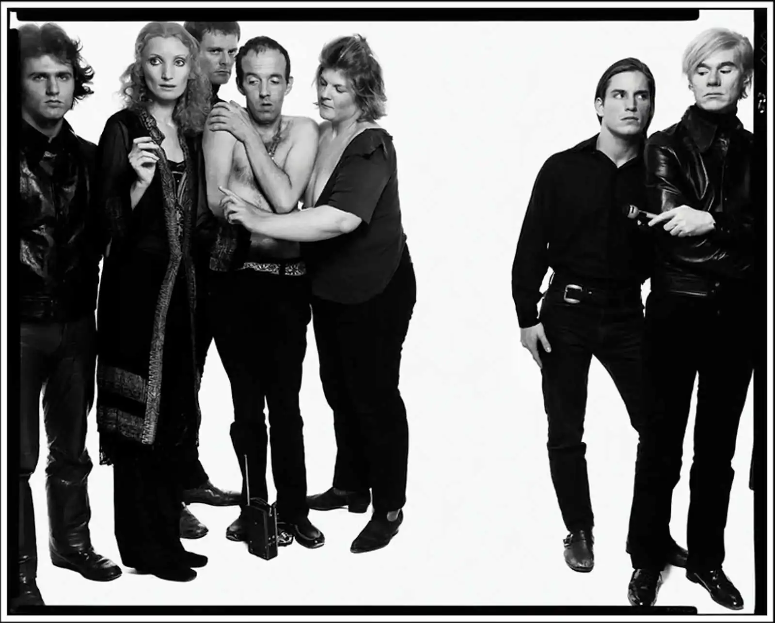 The murals are society portraits. In them, Avedon assembles giants of the late twentieth century—members of Andy Warhol’s Factory, architects of the Vietnam war, and demonstrators against that war—who together shaped an extraordinarily turbulent era of American life. Presented in one gallery, their enormous portraits will stage an unlikely conversation among historically opposed camps, as well as contemporary viewers. The formal innovations of Avedon’s high style—of starkly lit bodies in an unsparing white surround—are best realized in these works, where subjects jostle and crowd the frame, and bright voids between them crackle with tension. Uniting the murals with session outtakes and contemporaneous projects, the exhibition will track Avedon’s evolving approach to group portraiture, through which he so transformed the conventions of the genre.