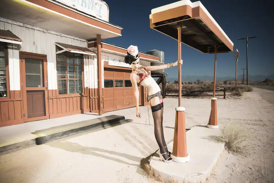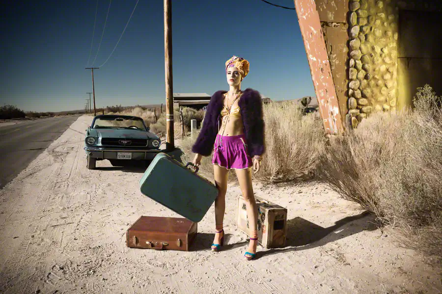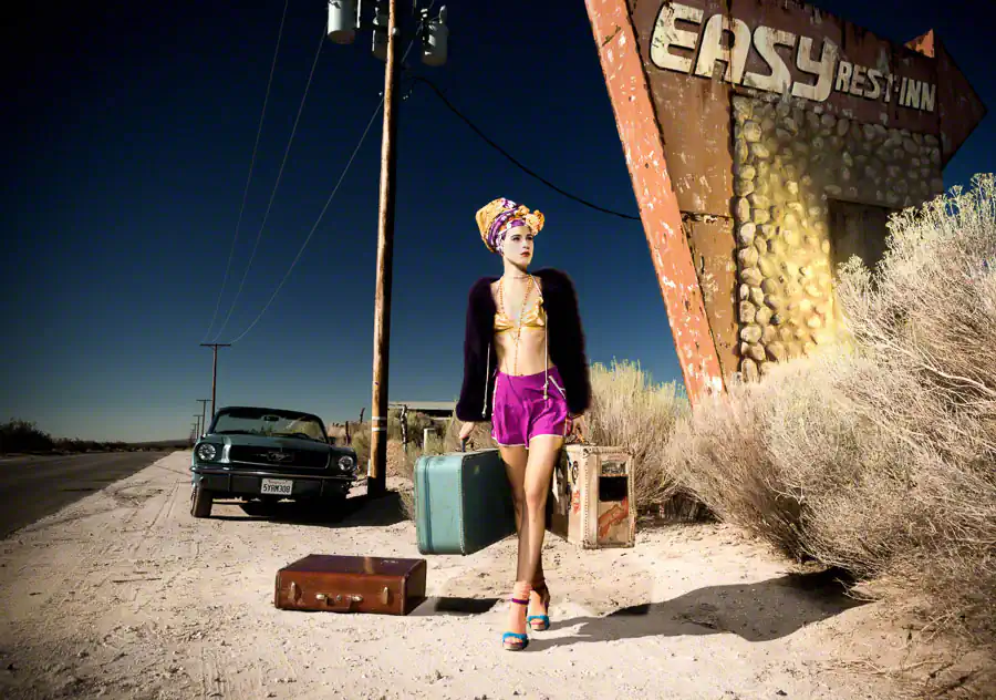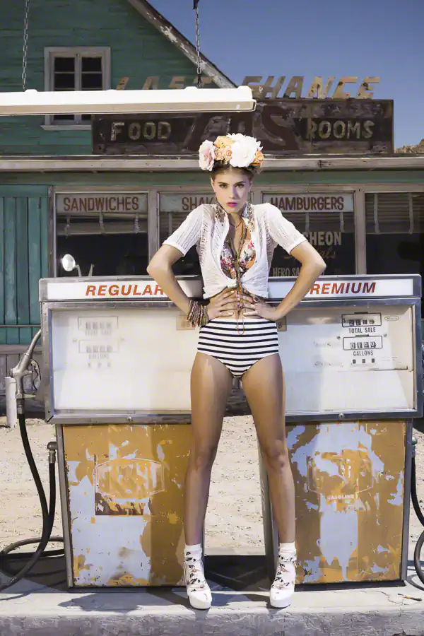 This project was really exciting because I had a team of people I love to work with and always makes a shoot fun and interesting. The theme was a road trip in California, but with a twist. I choose to shoot at a very popular location near Los Angeles. I wanted to portray it differently from every other images I had seen for this place and create a kind of iconic, cinematographic feel all together but still on the fashion side.